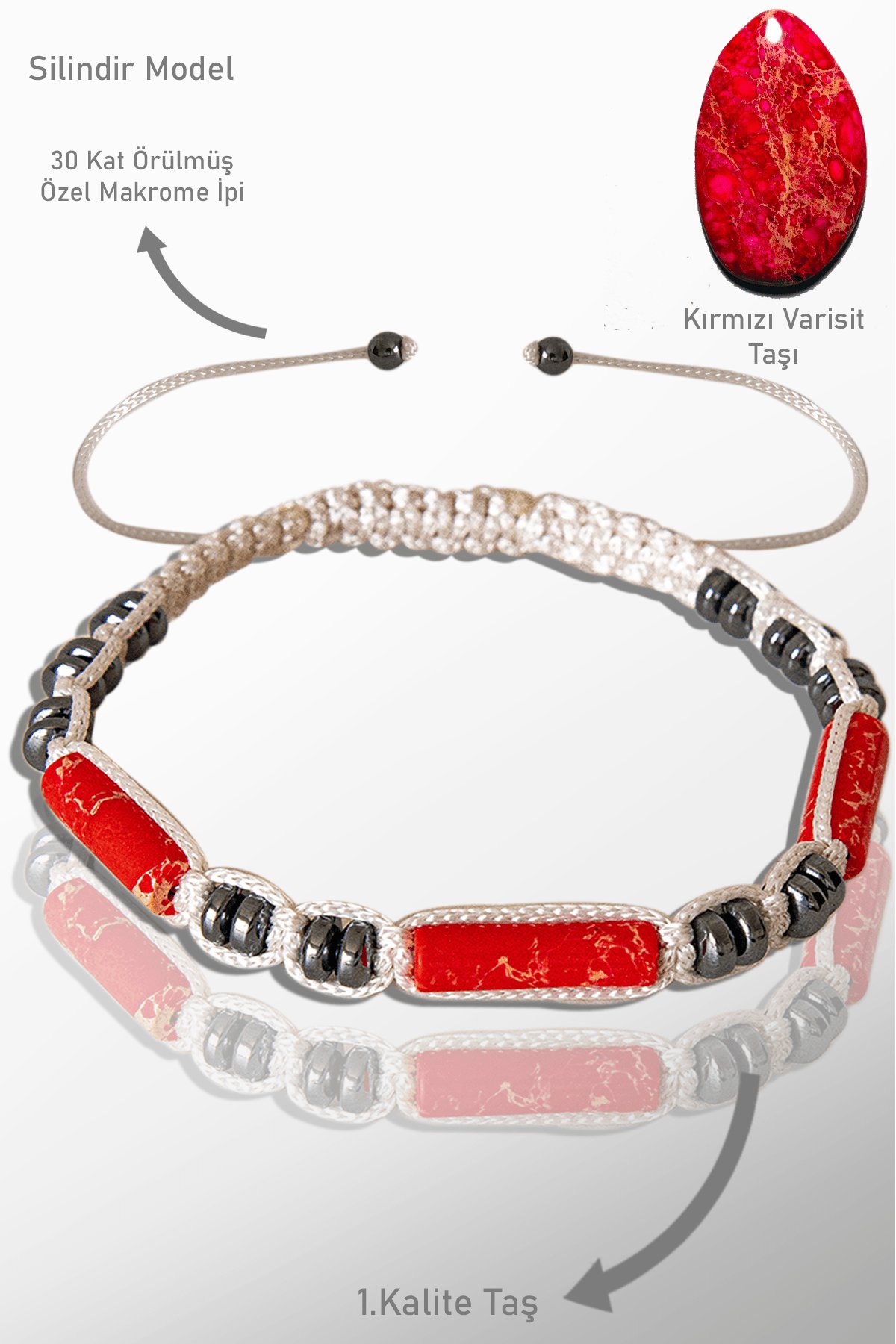 Sertifikalı Gerçek Hematit - Kırmızı Varisit Taşı Bileklik - Ayarlamalı
