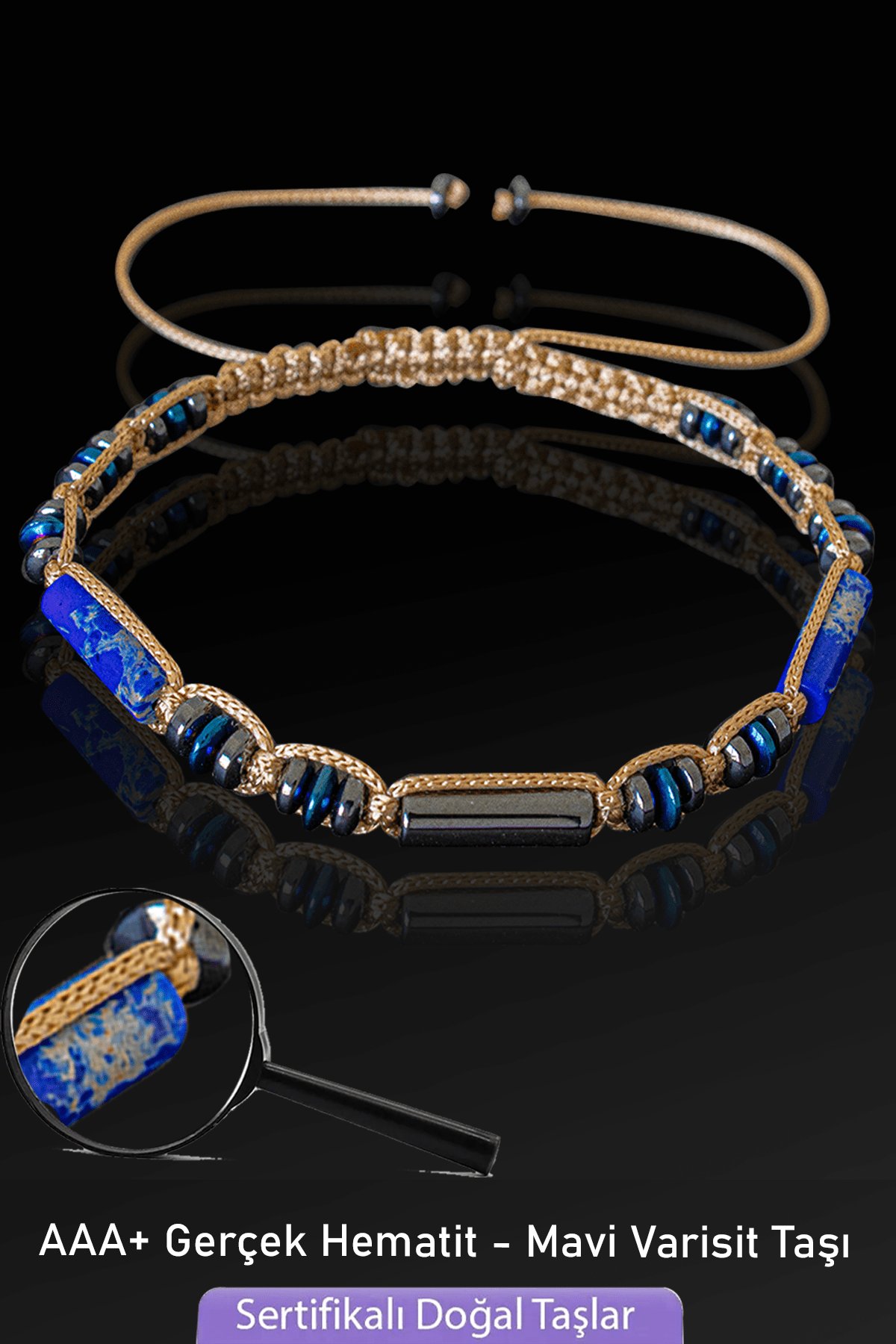 Sertifikalı Gerçek Hematit - Mavi Varisit Taşı Bileklik - Ayarlamalı