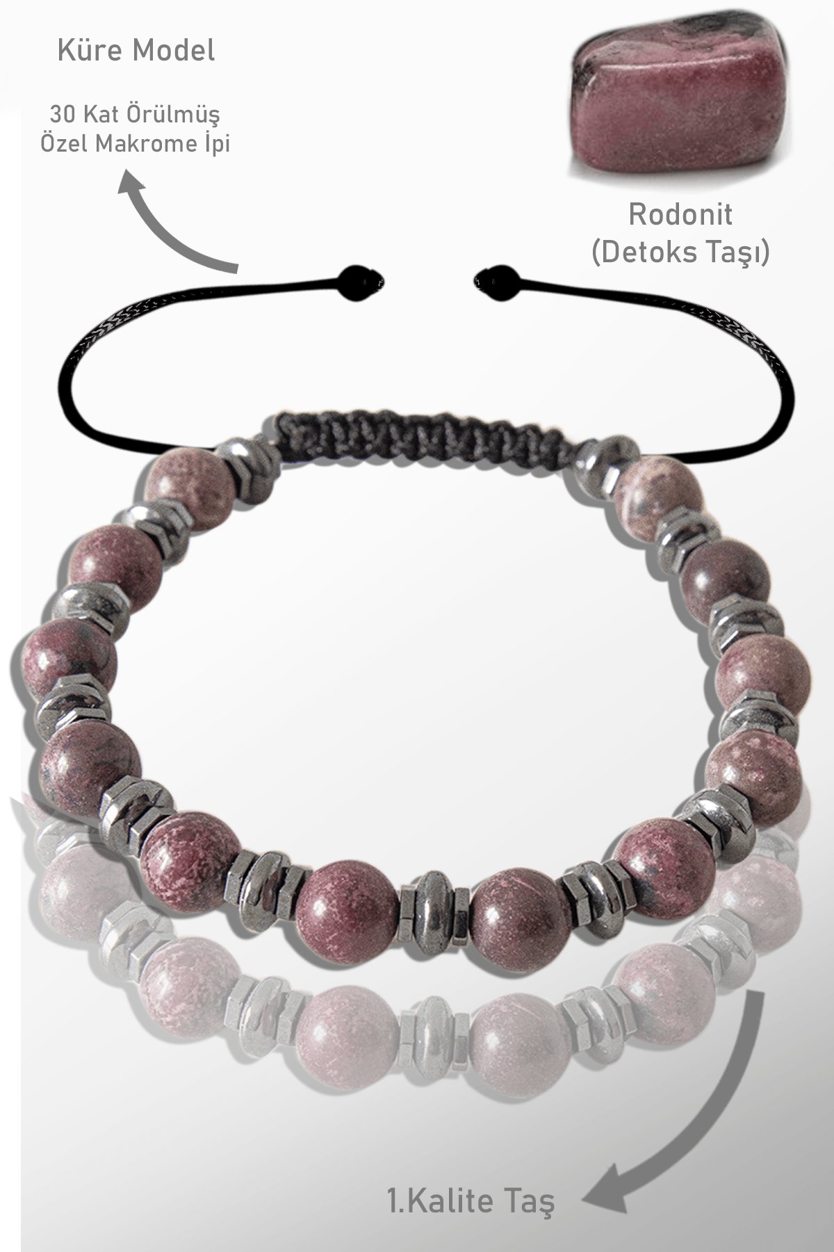 Sertifikalı Gerçek Hematit - Rodonit Taşı Bileklik - Ayarlamalı