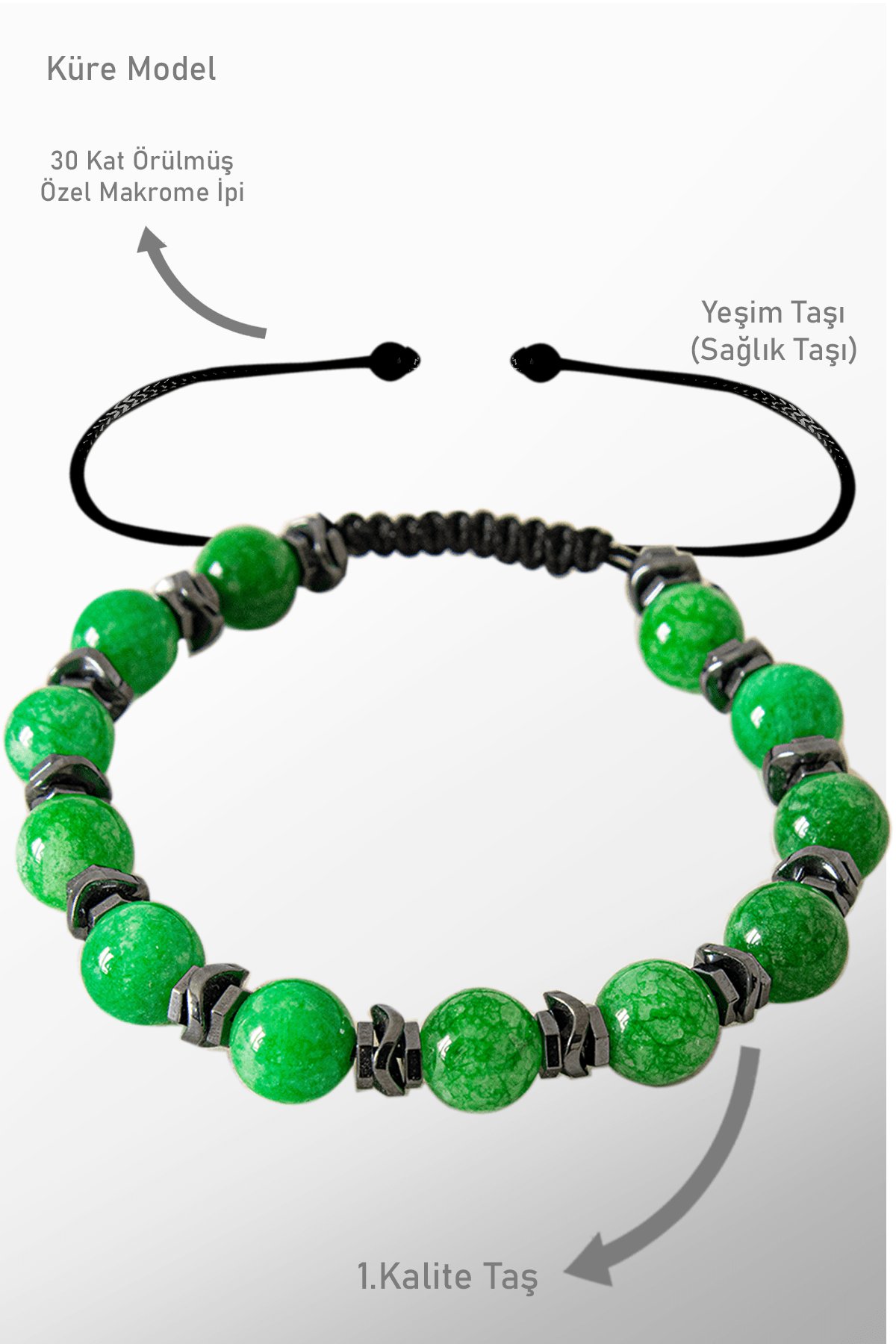 Sertifikalı Gerçek Hematit - Yeşim Taşı Bileklik - Ayarlamalı