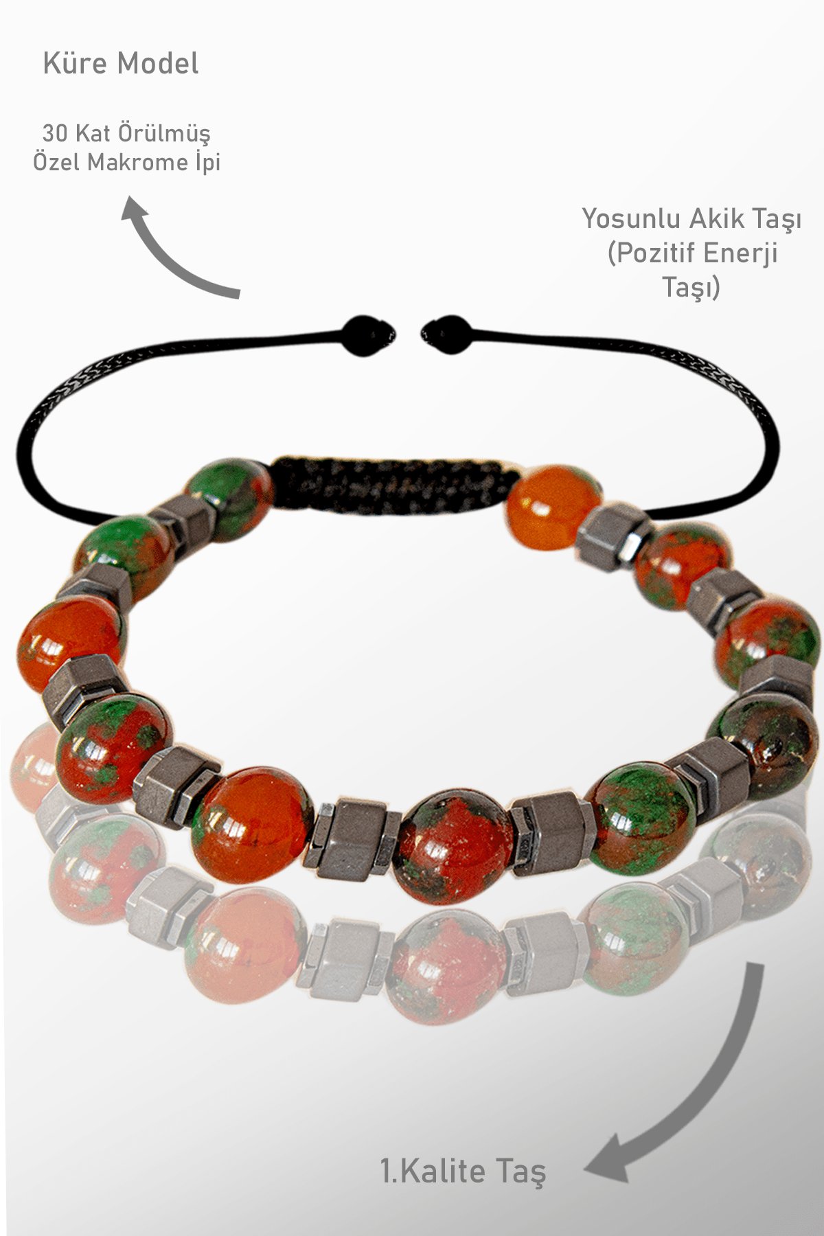 Sertifikalı Gerçek Hematit - Yosunlu Yeşil Kırmızı Akik Taşı Bileklik
