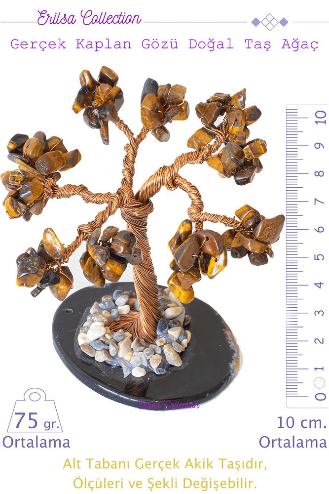 Gerçek Kaplan Gözü Doğal Taşı Ağaç; gerçek sedef doğal taşları arasından özenle seçilerek üretilmiştir. El yapımı olan bu ağaçlar, doğaları gereği resimdeki ile farklılık gösterebilir. Ölçüleri aşağıda teknik detaylarda belirtilenle yaklaşık olarak aynıdır, fakat şekilleri muhakkak farklıdır. Bu bir hata değil aksine ürünün fabrikasyon ürün olmadığının, gerçek doğal taş ve el yapımı olduğunun önemli bir göstergesidir