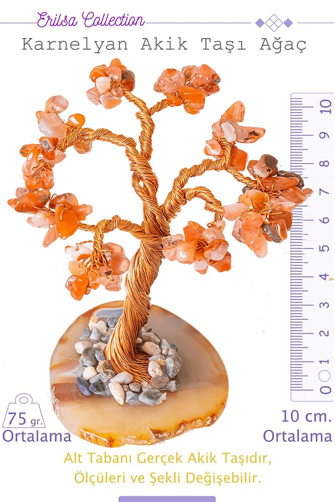 Gerçek Karnelyan Akik Taşı Ağaç; gerçek sedef doğal taşları arasından özenle seçilerek üretilmiştir. El yapımı olan bu ağaçlar, doğaları gereği resimdeki ile farklılık gösterebilir. Ölçüleri aşağıda teknik detaylarda belirtilenle yaklaşık olarak aynıdır, fakat şekilleri muhakkak farklıdır. Bu bir hata değil aksine ürünün fabrikasyon ürün olmadığının, gerçek doğal taş ve el yapımı olduğunun önemli bir göstergesidir