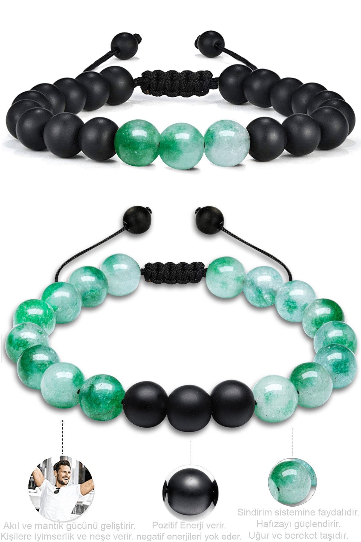Ürün ya da Doğal Taş Açıklaması (Pembe Renk Kuvars Taşı ve Oniks Taşı Doğal Taş Bileklik 2'Li Set)