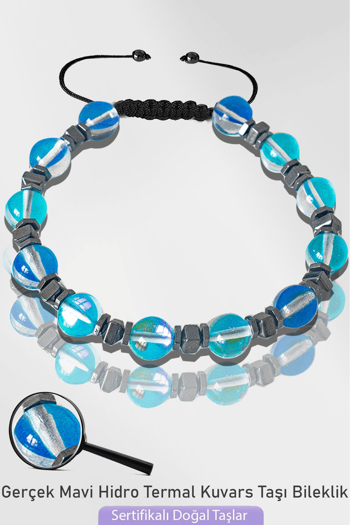 Sertifikalı Gerçek Mavi Hidro Termal Kuvars Taşı Bileklik - Ayarlamalı