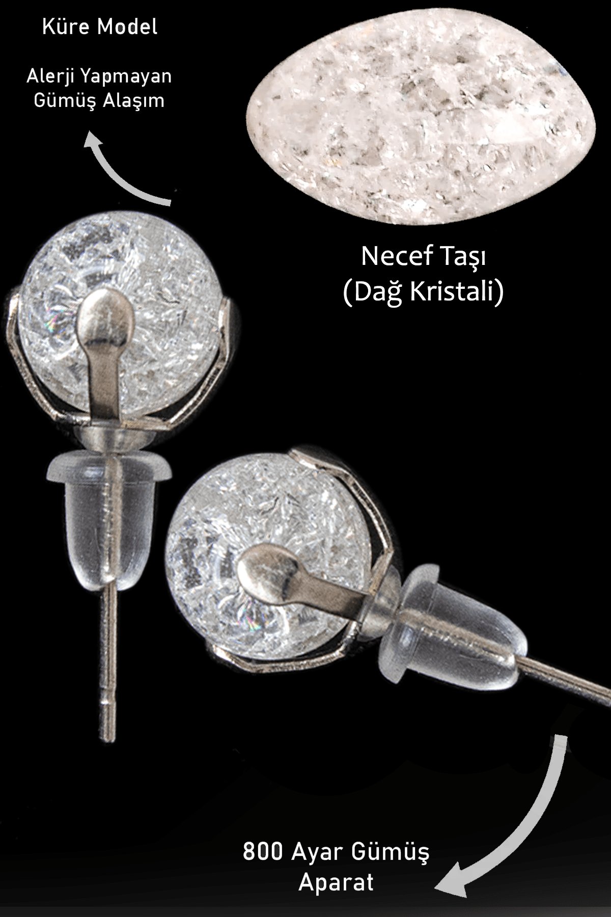 Sertifikalı Gerçek Necef Taşı Nokta Doğal Taş Küpe - Dağ Kristali