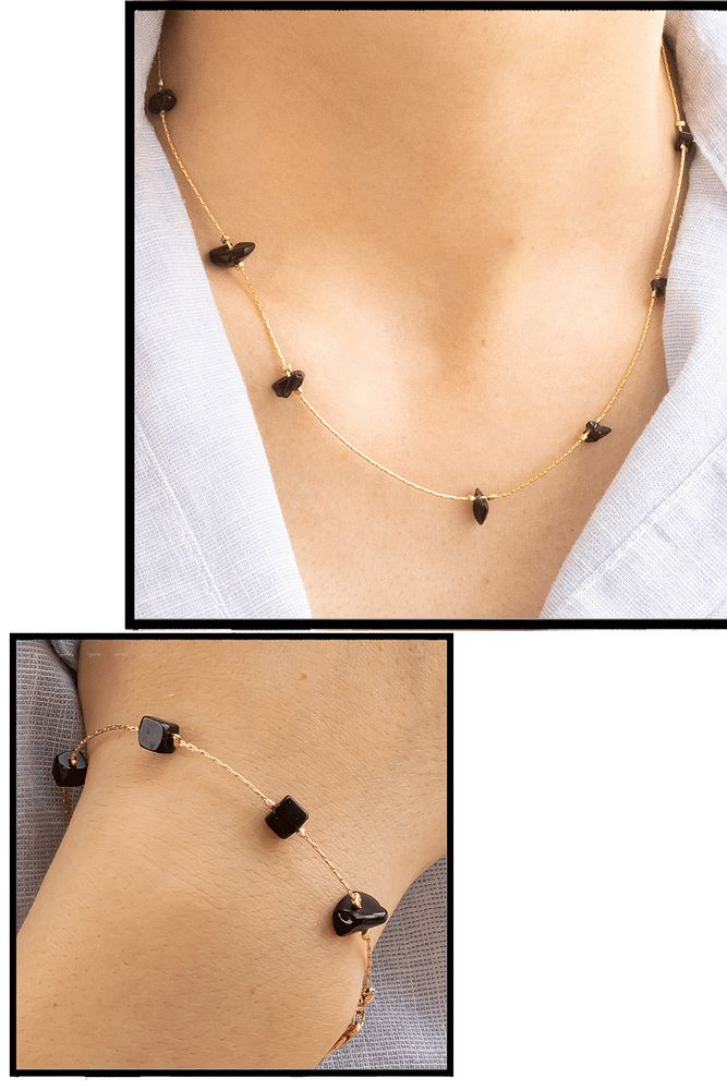 Sertifikalı Gerçek Obsidyen Taşlı Doğal Taş Kolye Bileklik Seti