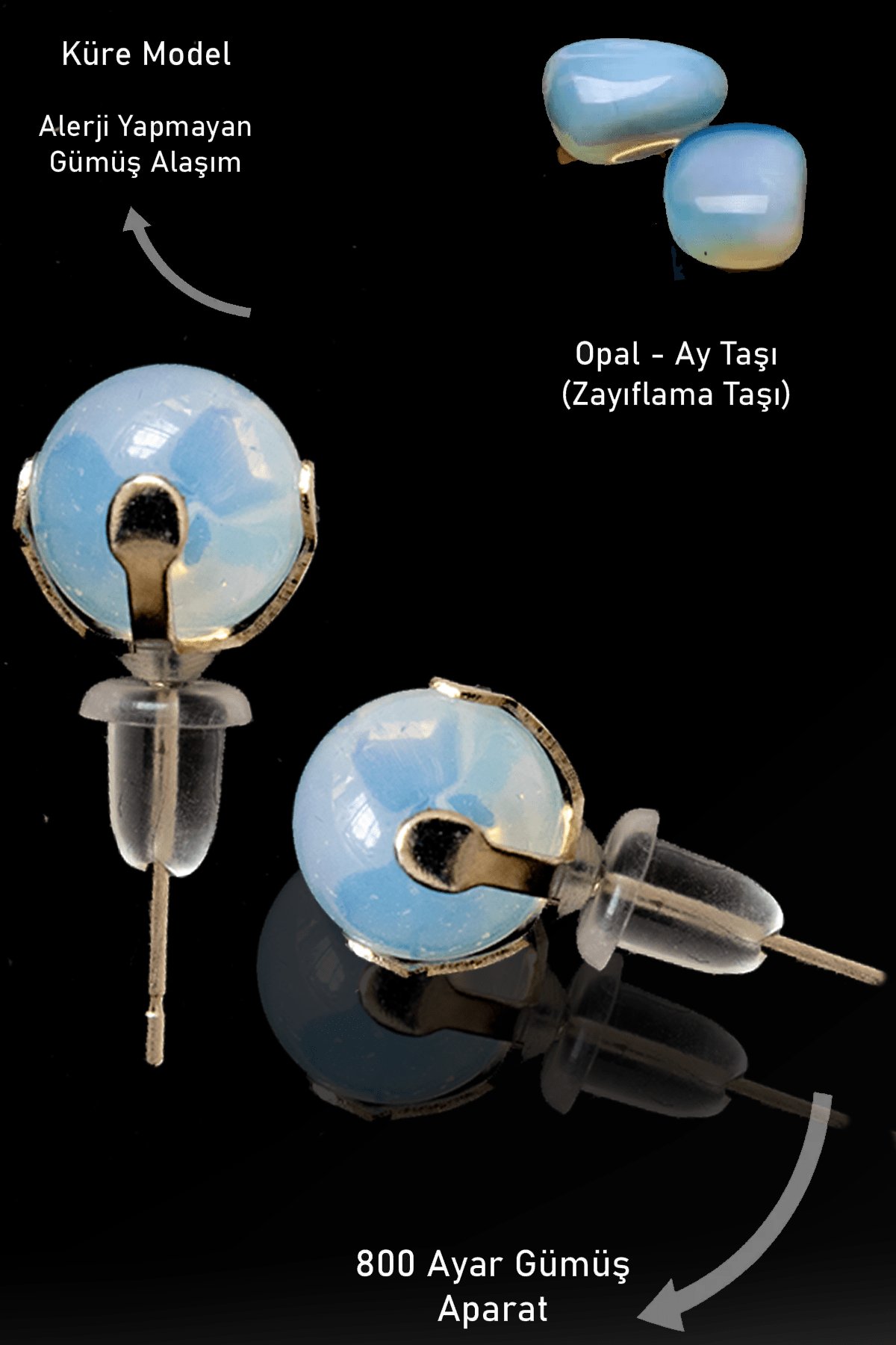 Sertifikalı Gerçek Opal Taşı Nokta Doğal Taş Küpe