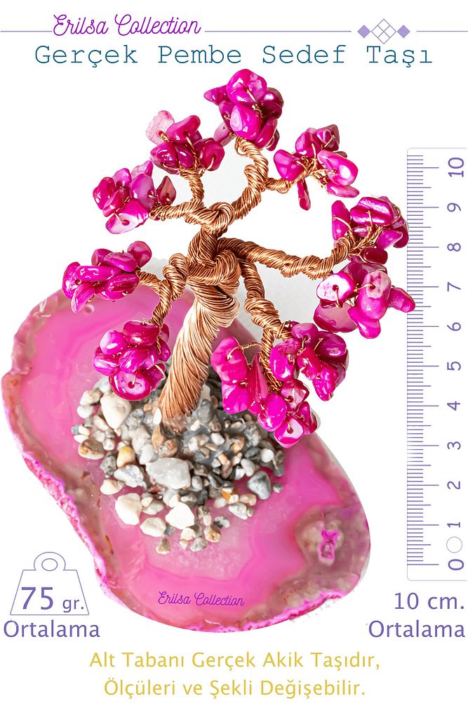 Sertifikalı Gerçek Pembe Sedef Doğal Taşı Ağaç - Akik Plakalı
