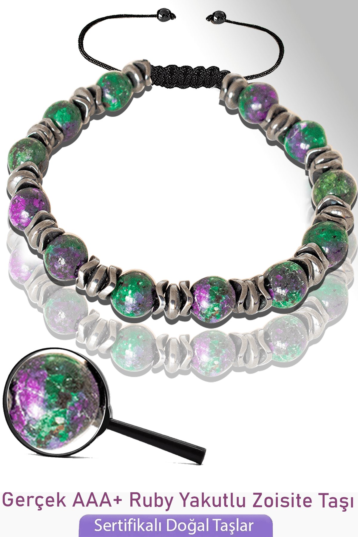 Sertifikalı Gerçek Ruby Yakutlu Zoisite Taşı Bileklik - Ayarlamalı