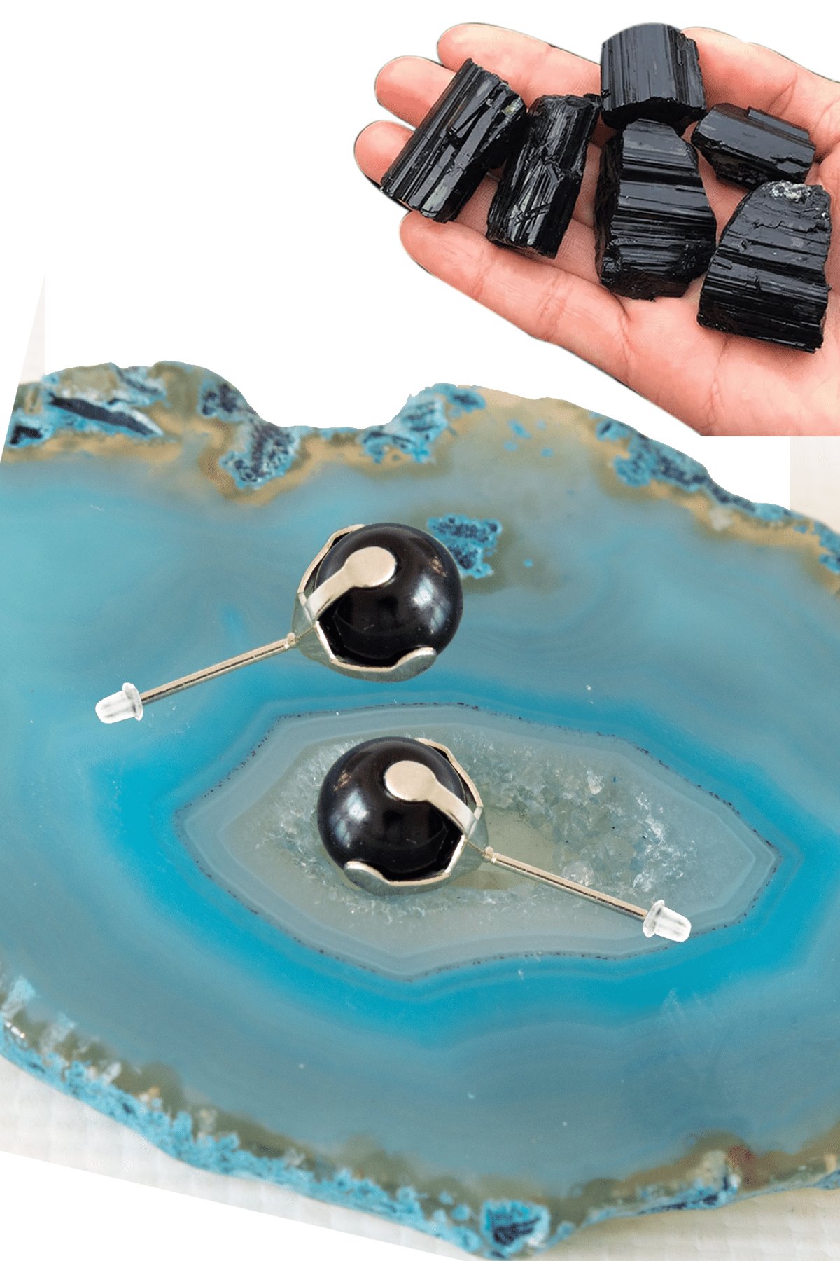 Sertifikalı Gerçek Siyah Turmalin Taşı Nokta Doğal Taş Küpe