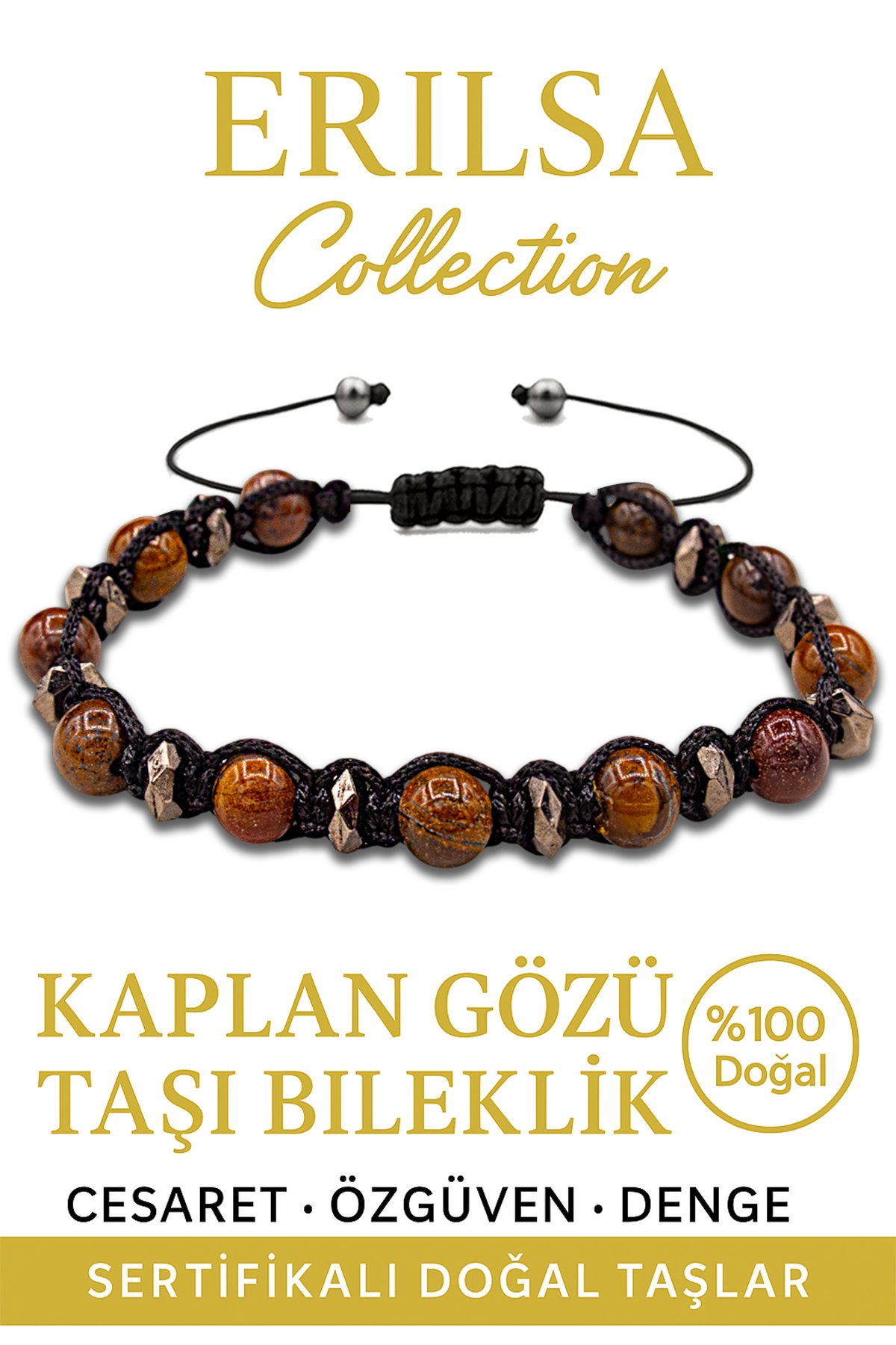 Sertifikalı doğal Kaplan Gözü taşlarının ham formda uyumunu sunan bu ince model bileklik, hem estetik bir şıklık hem de koruma ve özgüven enerjisi sağlar.