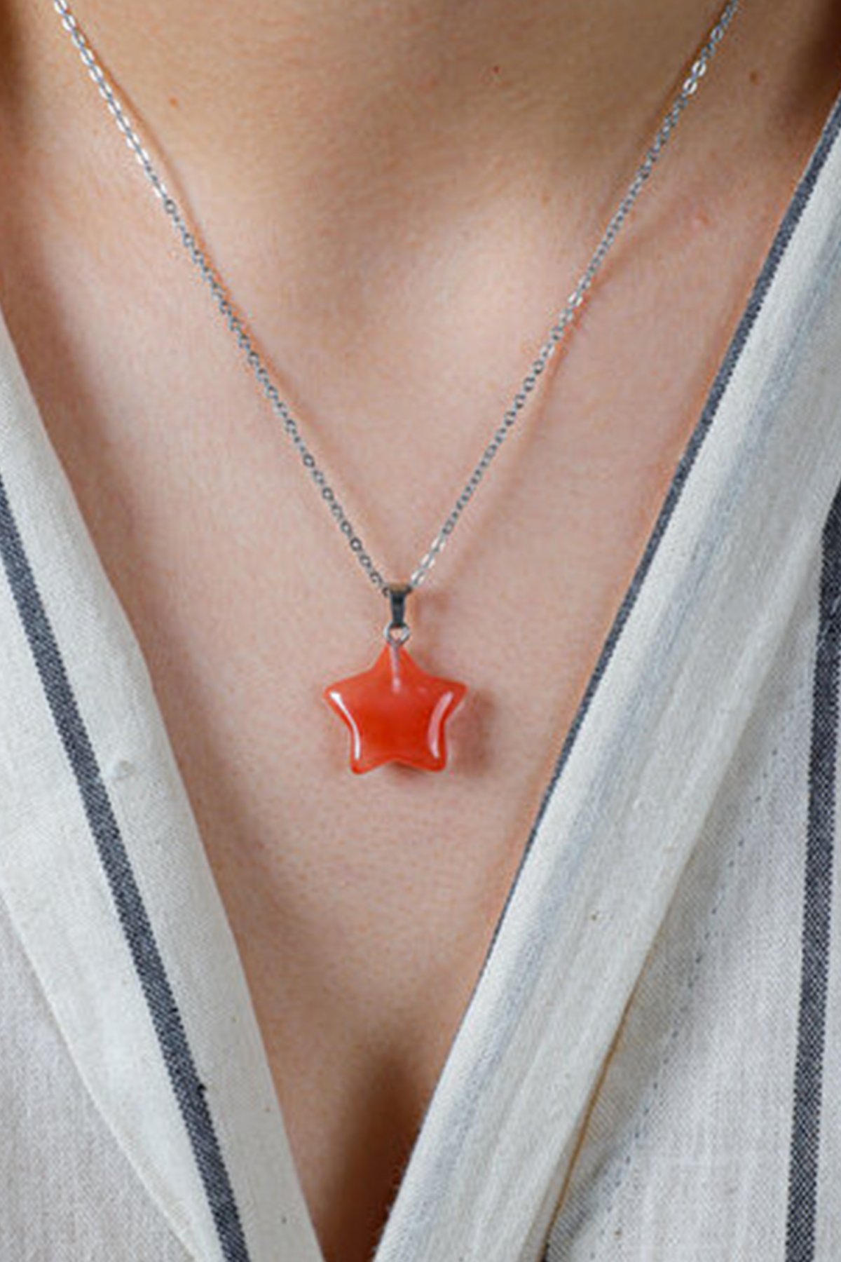 Sertifikalı Gerçek Yıldız Model Gül Kuvars Taşı Kolye - Gümüş Aparatlı