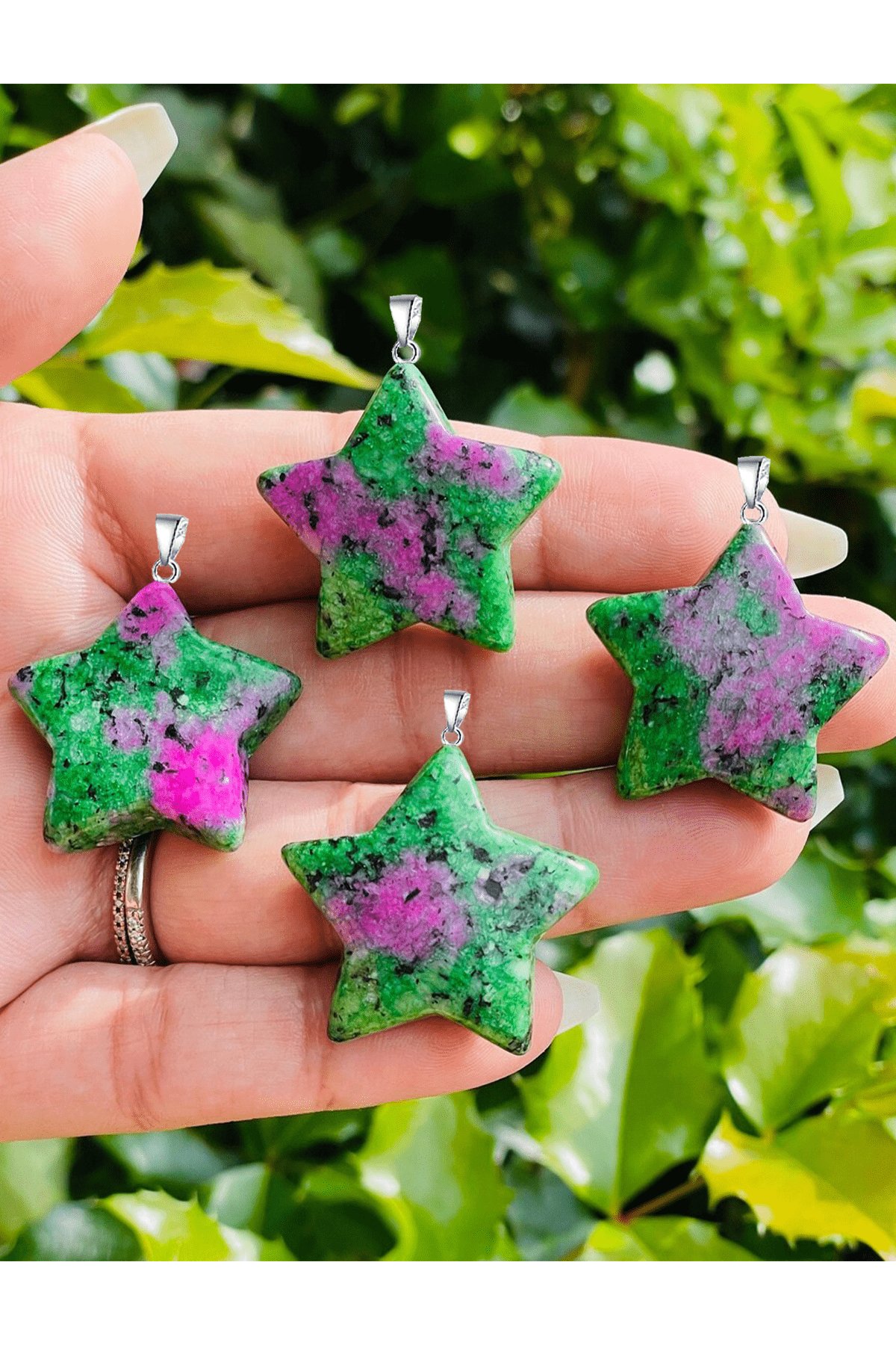 Sertifikalı Gerçek Yıldız Model Ruby Yakutlu Zoisite Taşı Kolye (Anyolit Taşı)