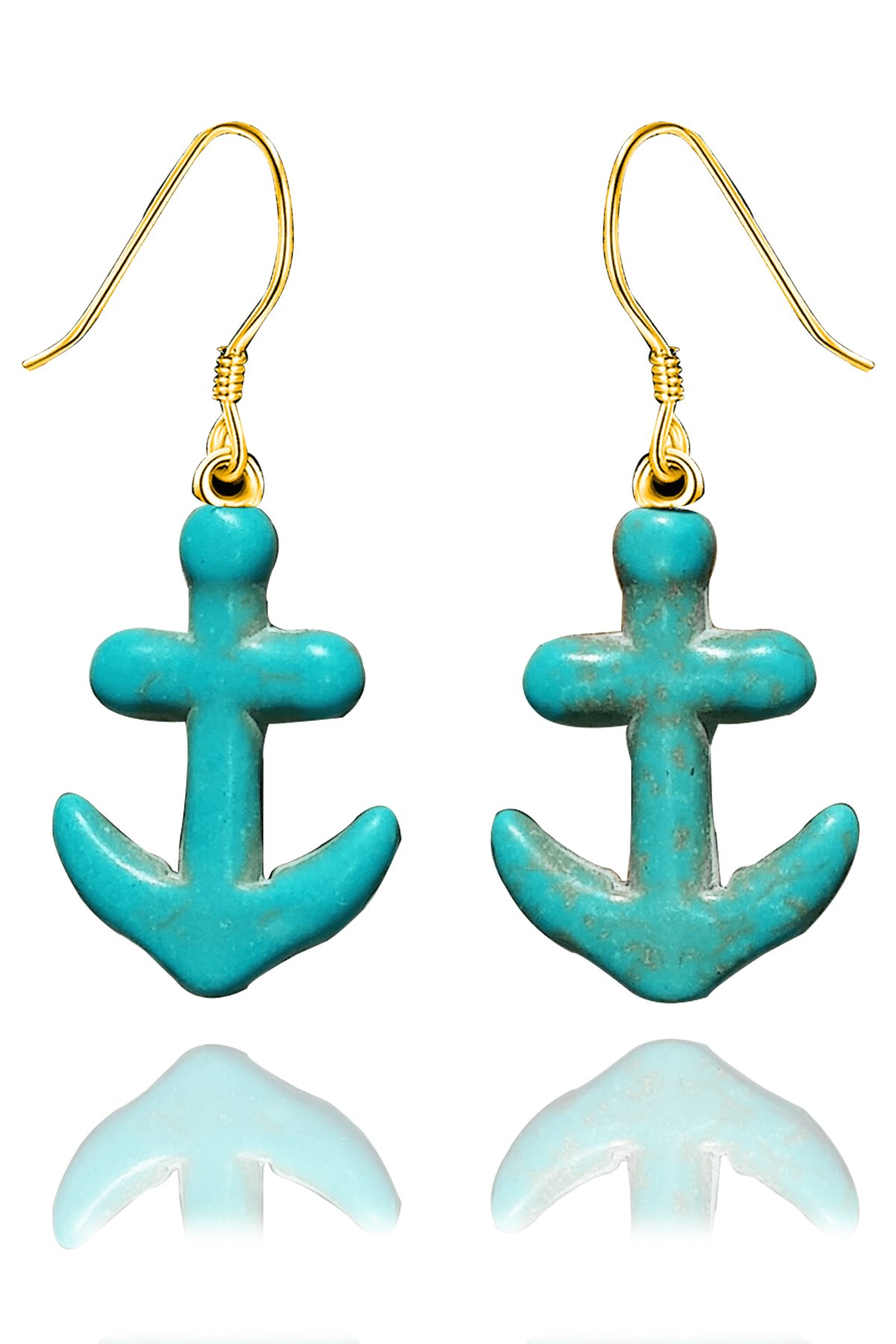 Sertifikalı Gold Çapa Model Gerçek Firuze Taşı Küpe (Turkuaz Taşı)