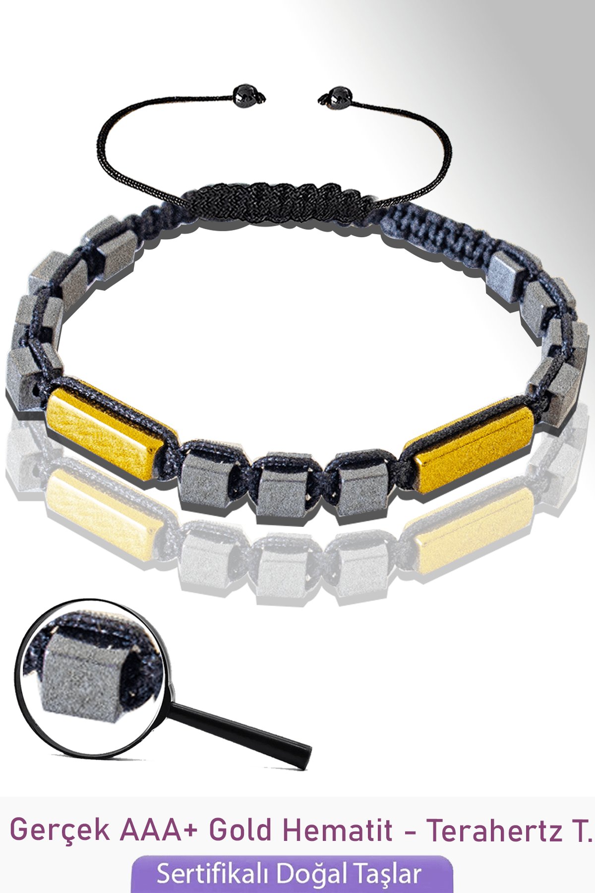 Sertifikalı Gold Hematit - Dikdörtgen - Terahertz Taşı Bileklik (Titreşim Taşı)