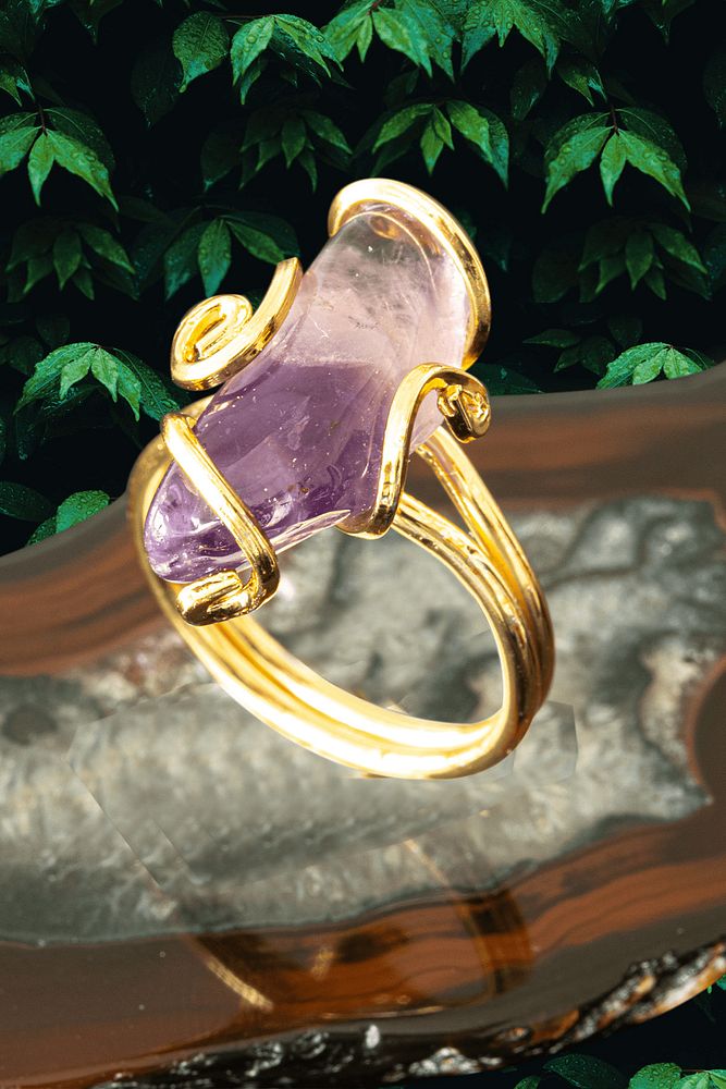 Sertifikalı Gold Rokoko Model Ametist Taşı Yüzük - Ayarlamalı