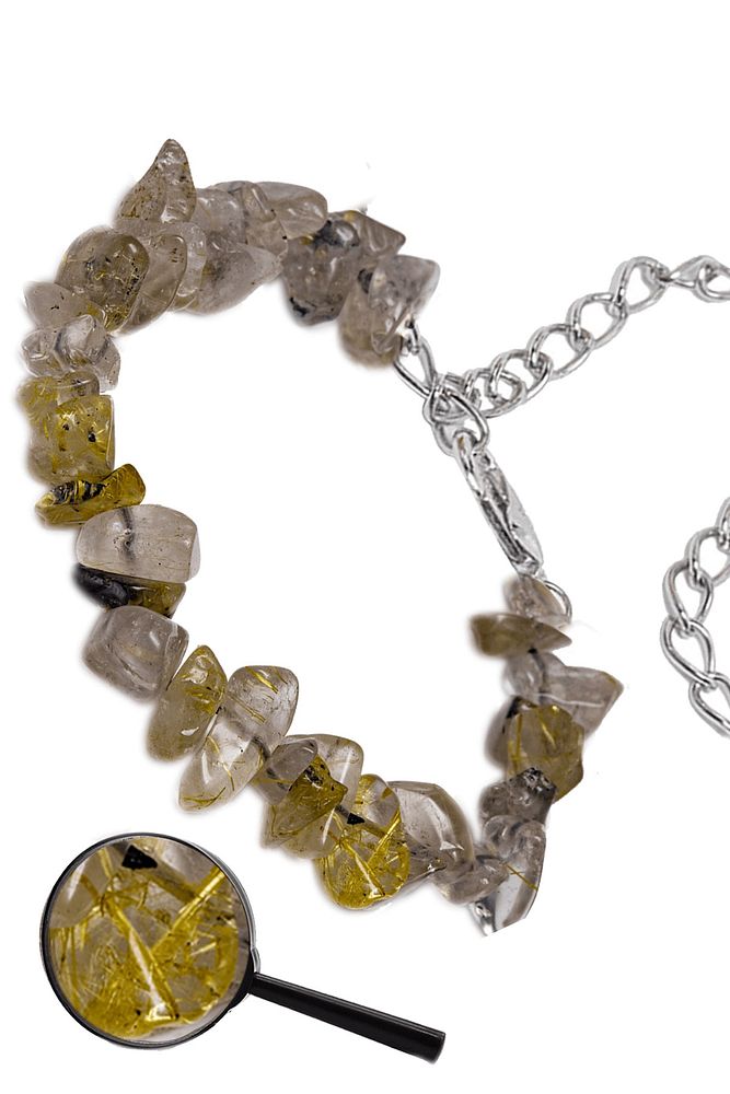 Sertifikalı Gold Rutil Kuvars Kırık Doğal Taşlı Bileklik 1.kalite (RUSYA)