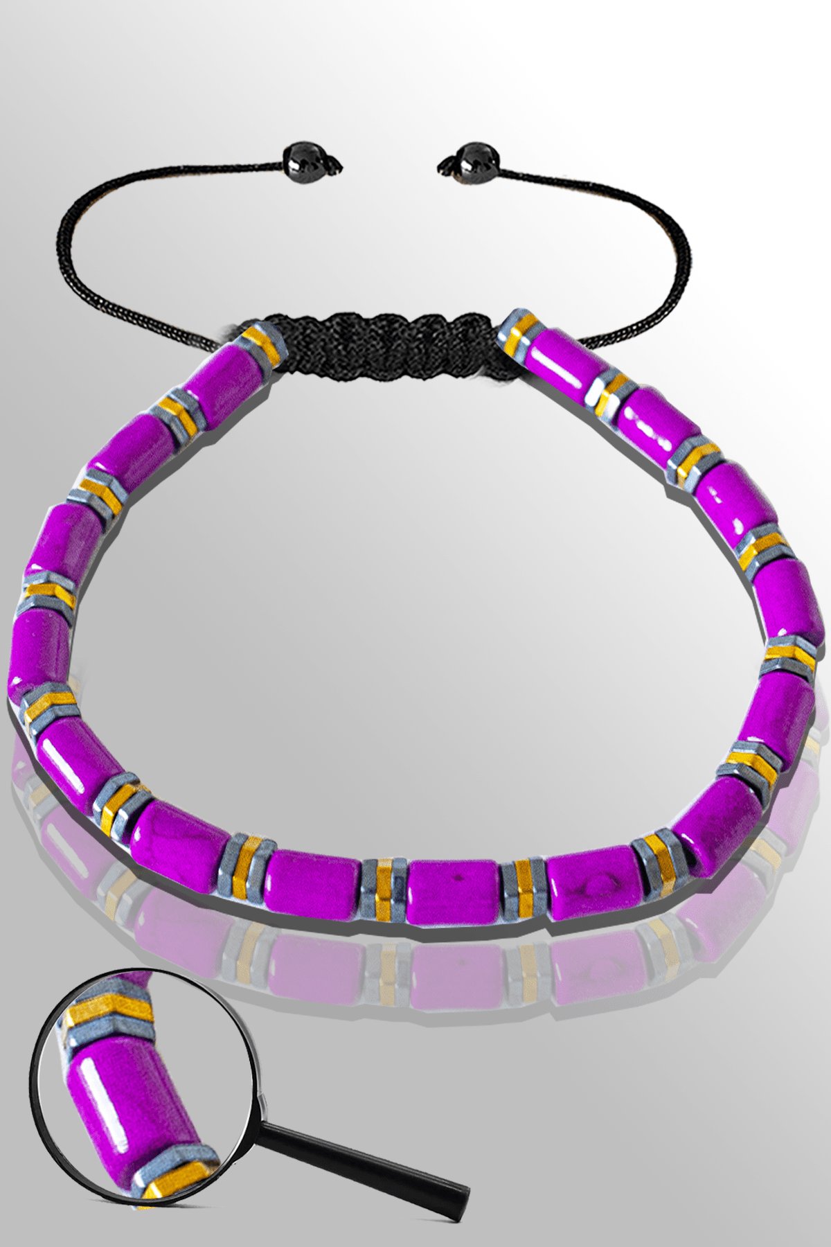 Sertifikalı Gold Silver Hematitli Mor Sedef Taşı Bileklik - Ayarlamalı