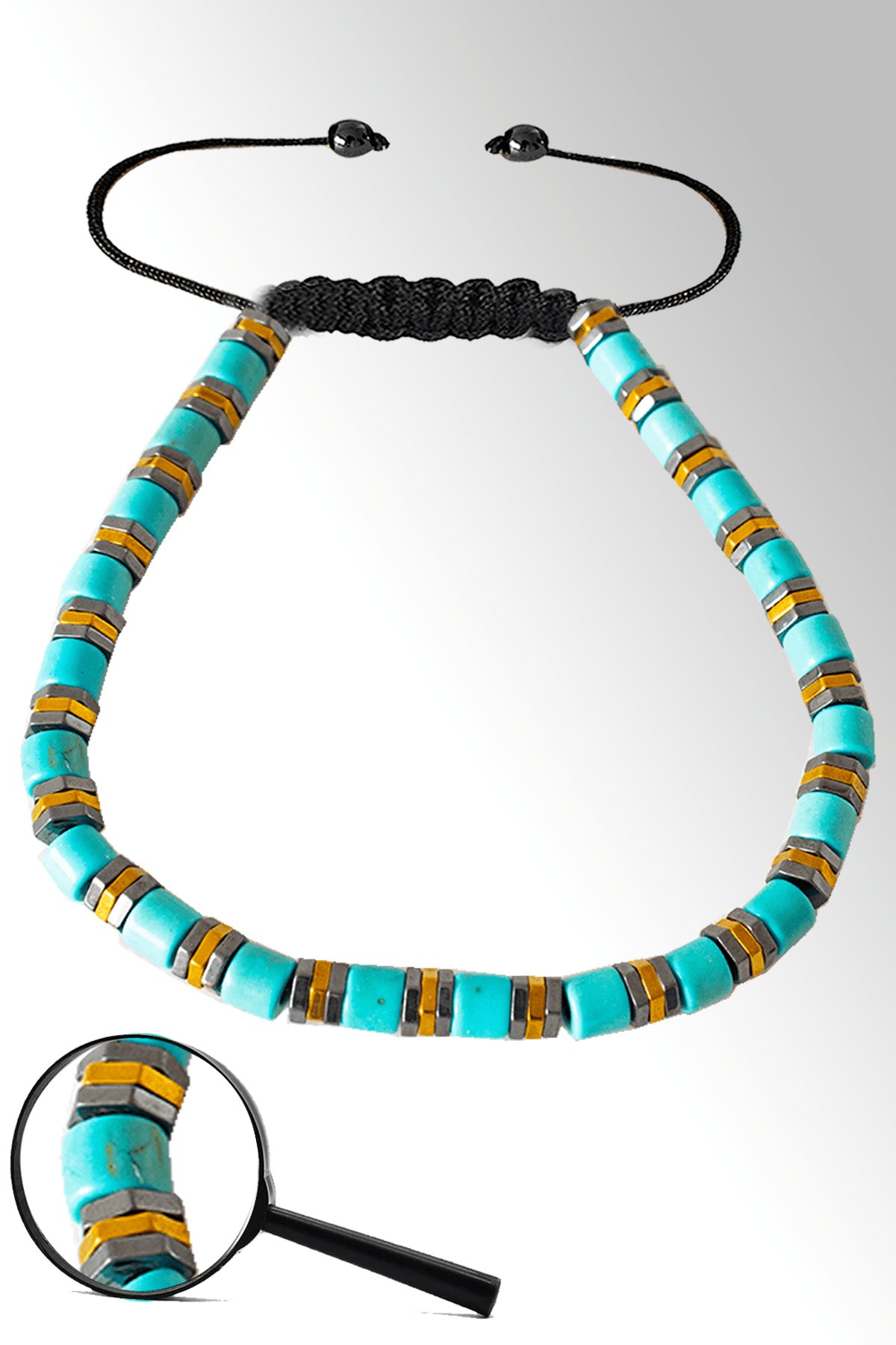Sertifikalı Gold Silver Hematitli Turkuaz Taşı Bileklik - Ayarlamalı