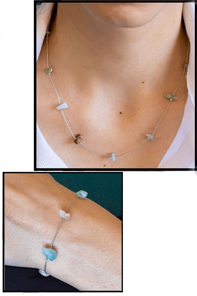 Sertifikalı Gümüş Amazonit Taşlı Doğal Taş Kolye Bileklik Seti