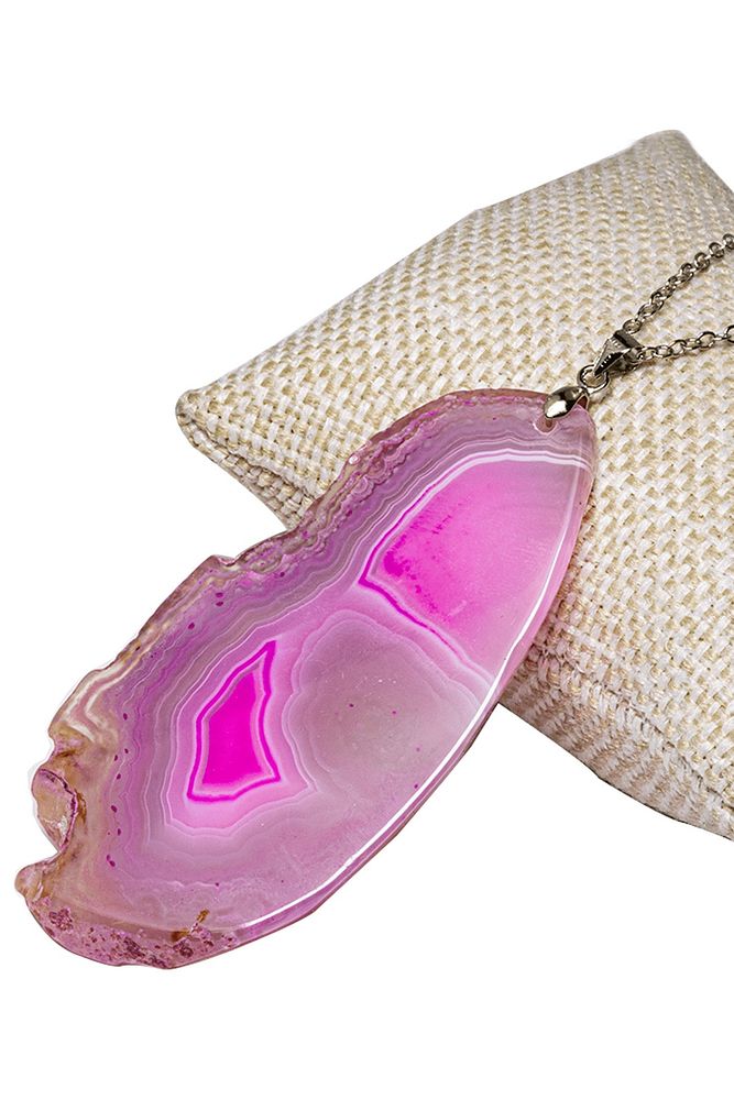 Sertifikalı Gümüş Aparatlı Doğal Pembe Akik Taşı Plaka Kolye