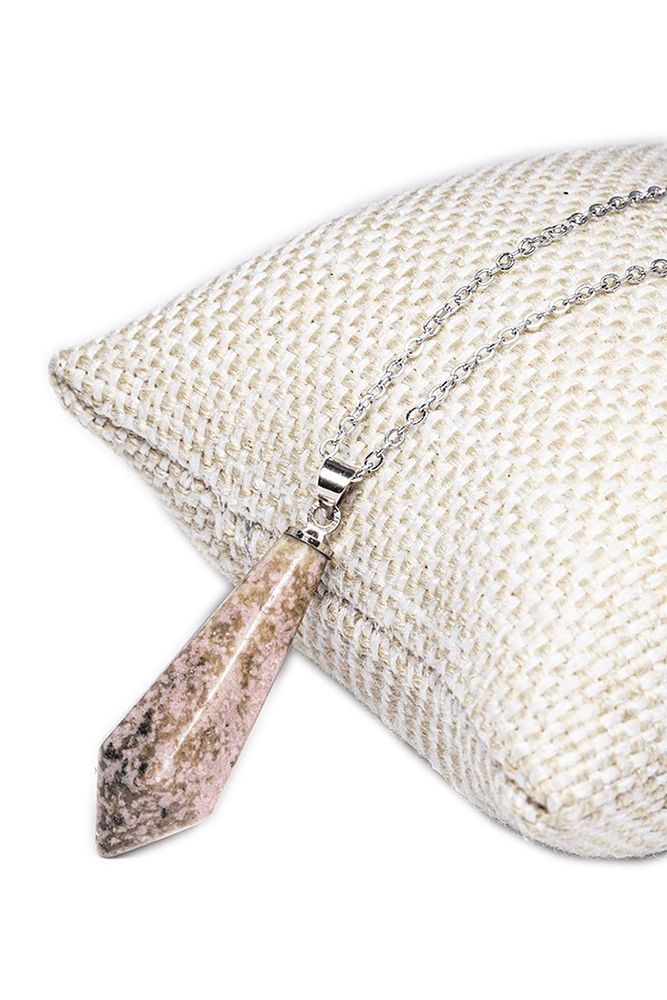Sertifikalı Gümüş Aparatlı Doğal Rodonit Taşı Kolye