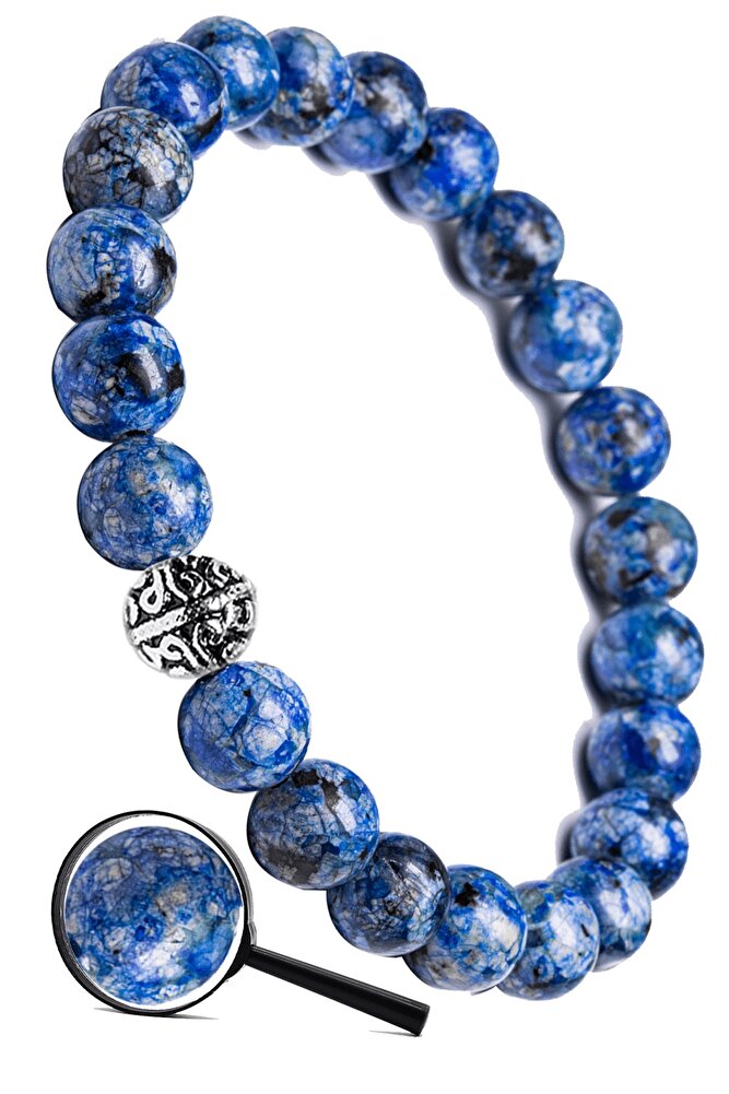Sertifikalı Gümüş Aparatlı Doğal Sodalit Taşı Bileklik