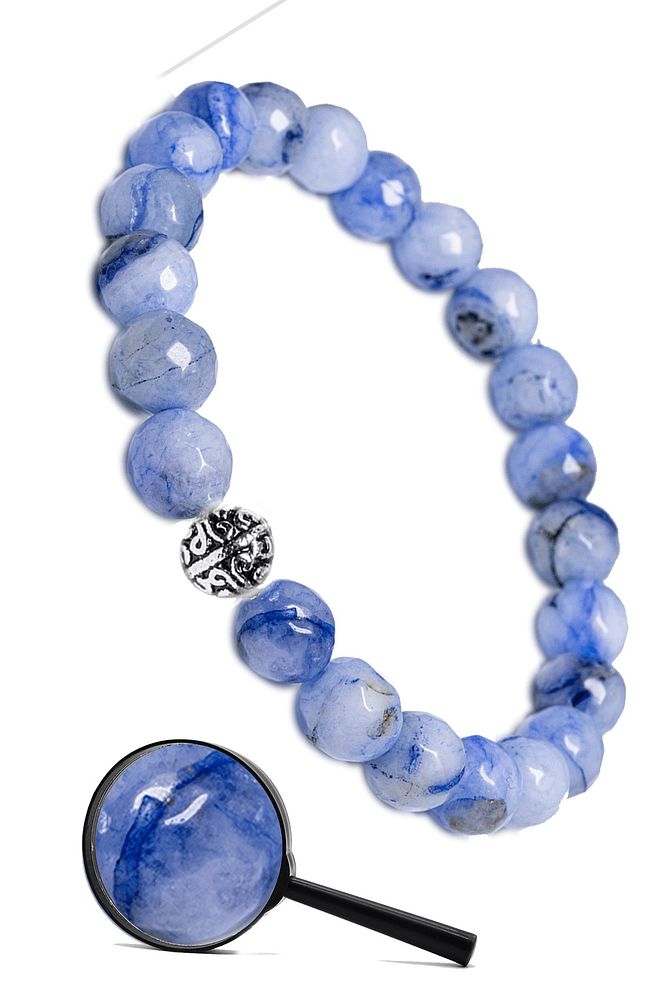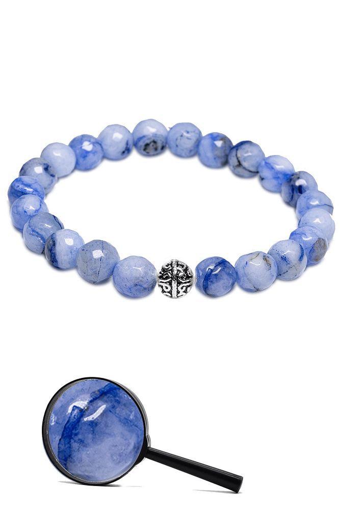 Sertifikalı Gümüş Aparatlı Fasetli Doğal Kalsedon Taşı Bileklik