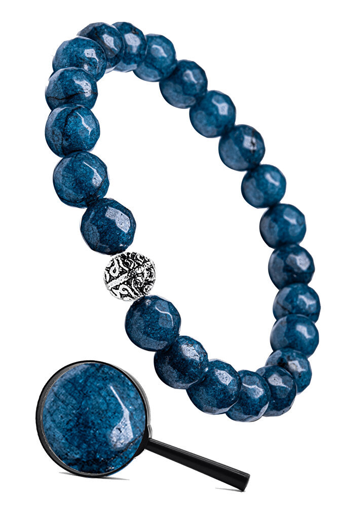 Sertifikalı Gümüş Aparatlı Fasetli Doğal Mavi Akik Taşı Bileklik