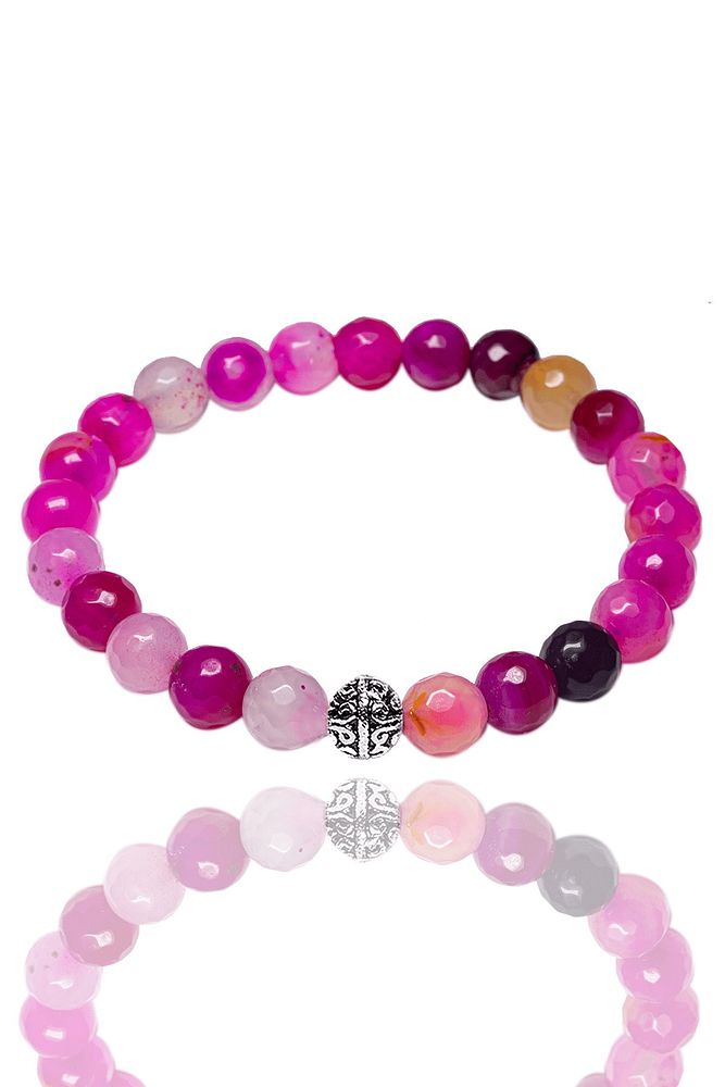 Sertifikalı Gümüş Aparatlı Fasetli Pembe Akik Taşı Bileklik