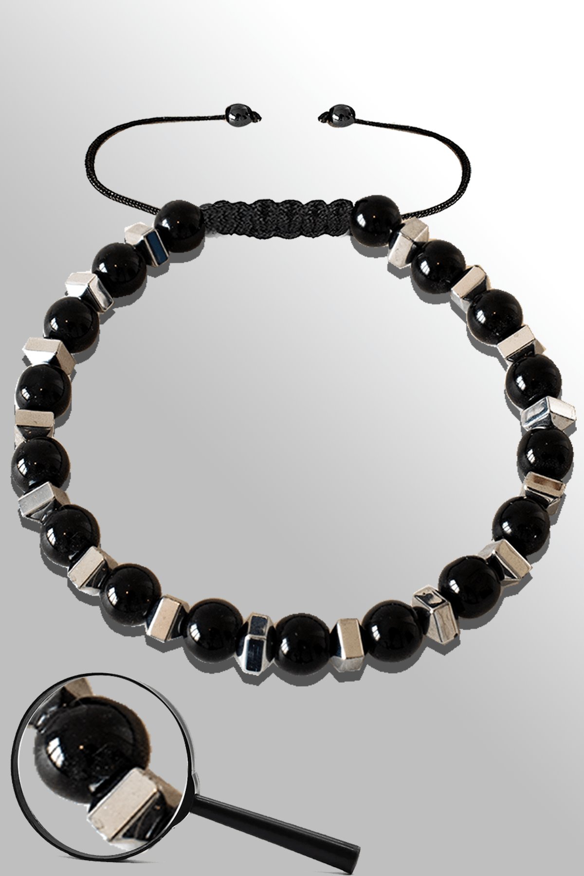 Sertifikalı Gümüş Falezli Siyah Obsidyen Taşı Bileklik - Ayarlamalı