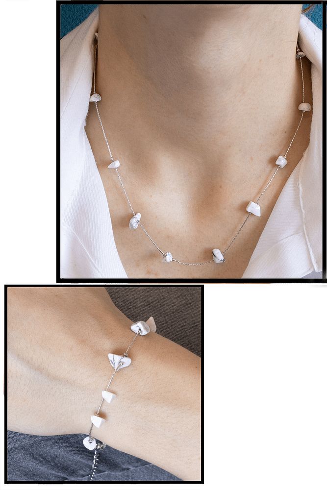 Sertifikalı Gümüş Havlit Taşlı Doğal Taş Kolye Bileklik Seti