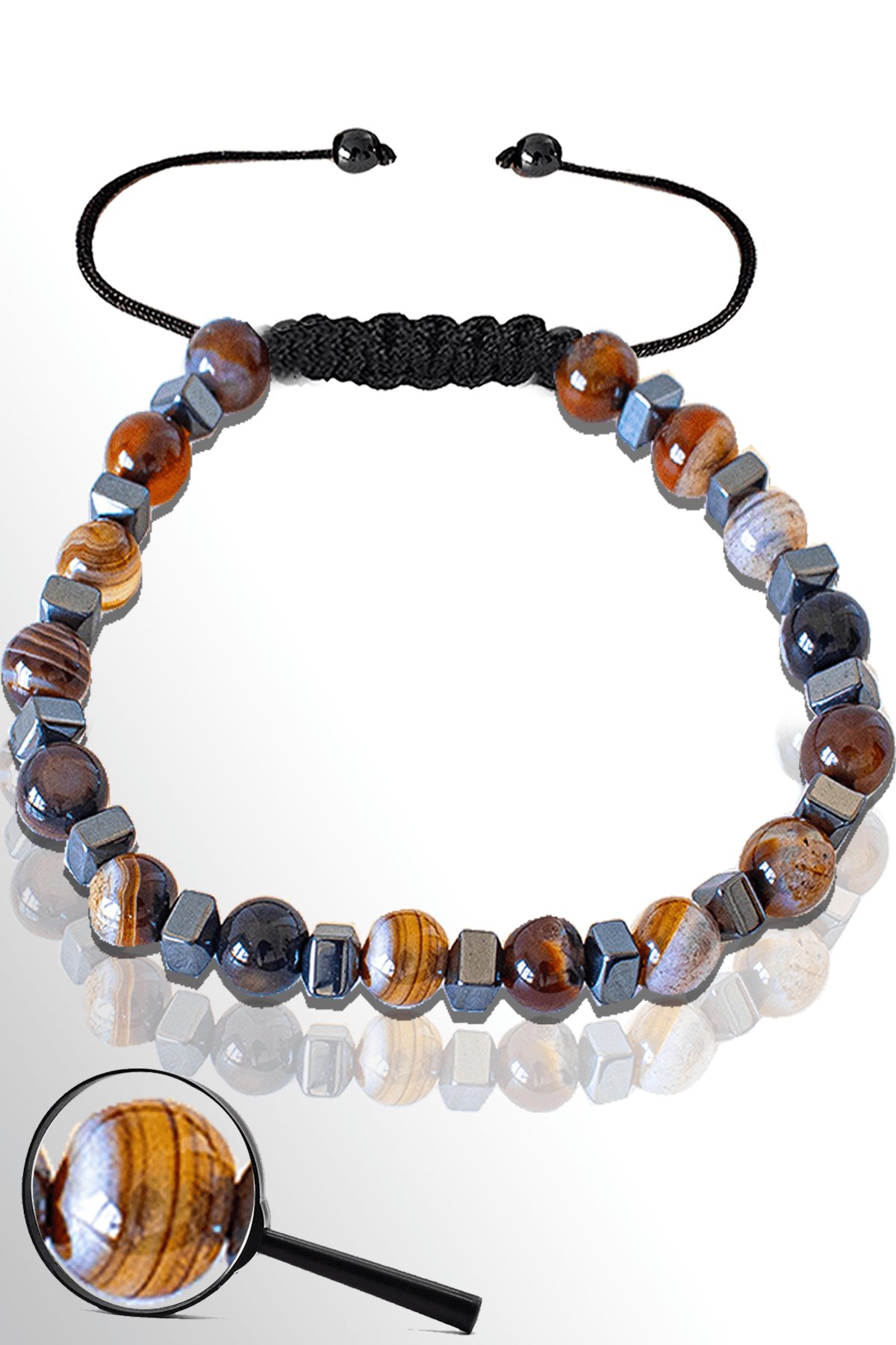 Sertifikalı Gümüş Hematitli 6 Mm Doğal Kahverengi Akik Taşı Bileklik - Bostwana