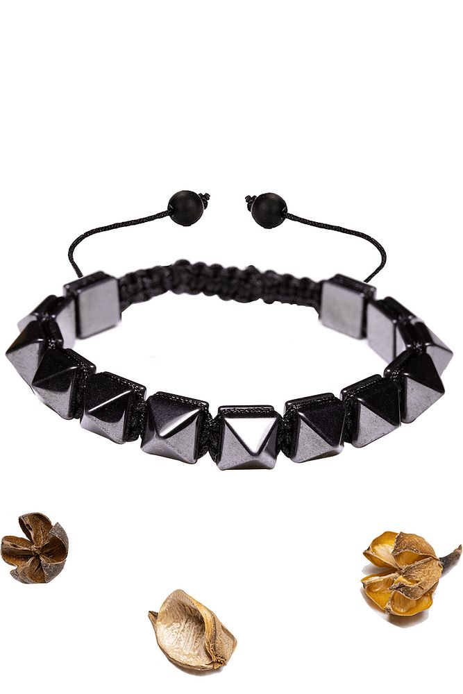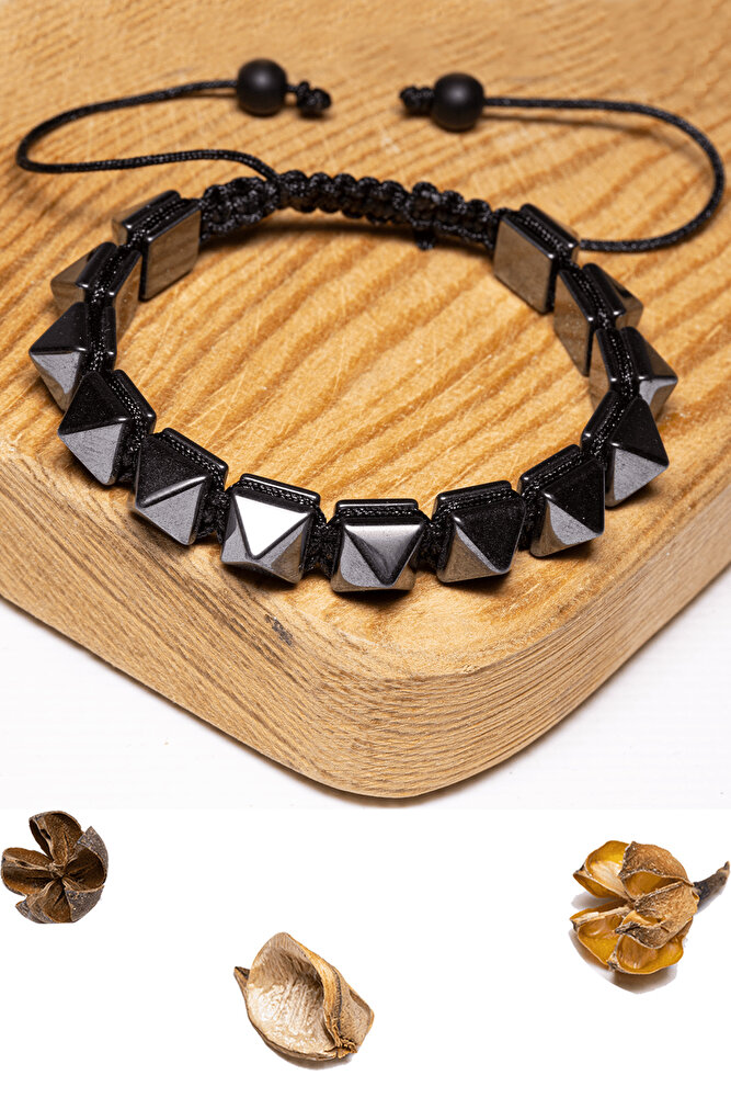 Sertifikalı Gümüş Prizma Hematit Taşı Bileklik - Makrome
