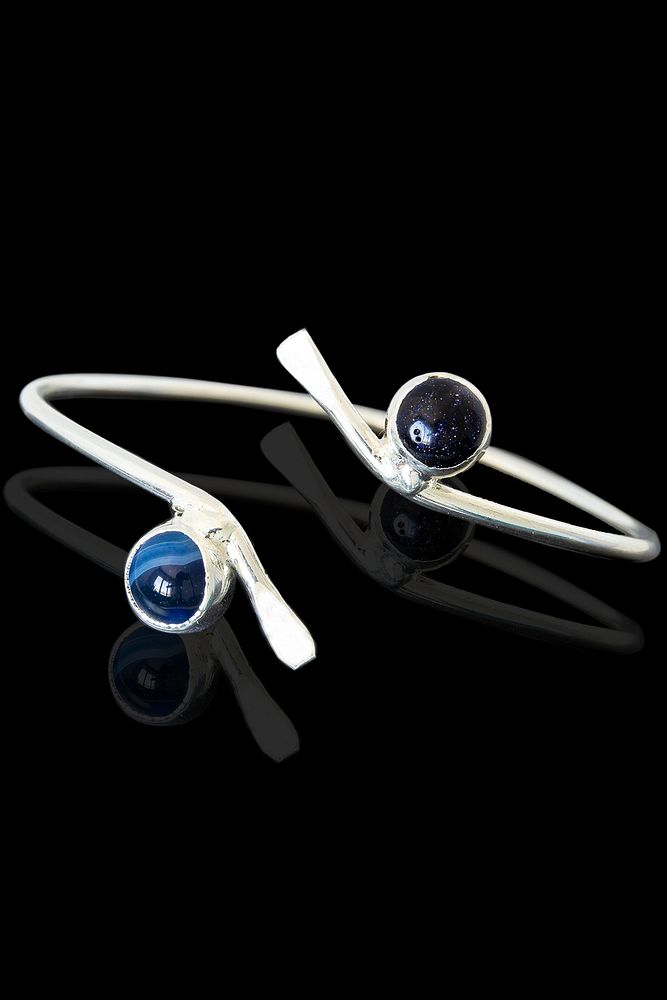 Sertifikalı Gümüş Renk Kelepçe Model Bileklik - (Mavi Akik - Lacivert Yıldız Taşı)