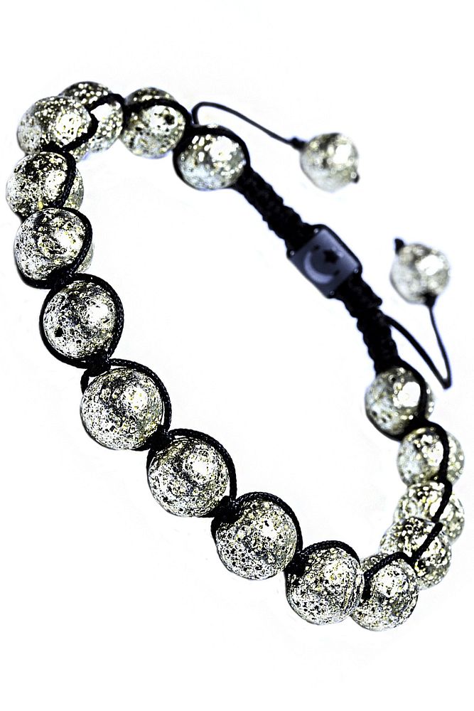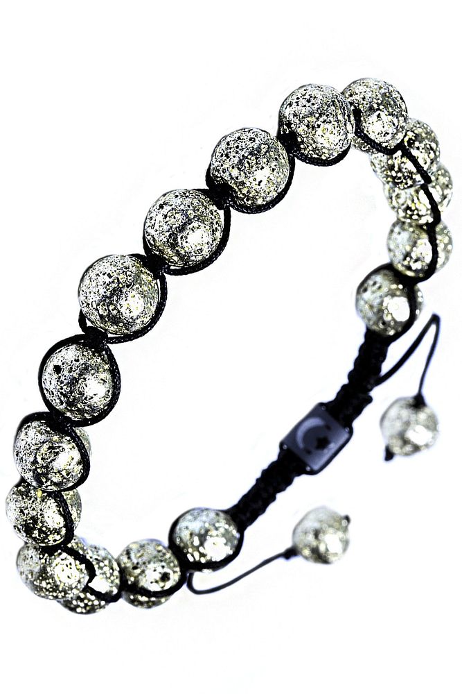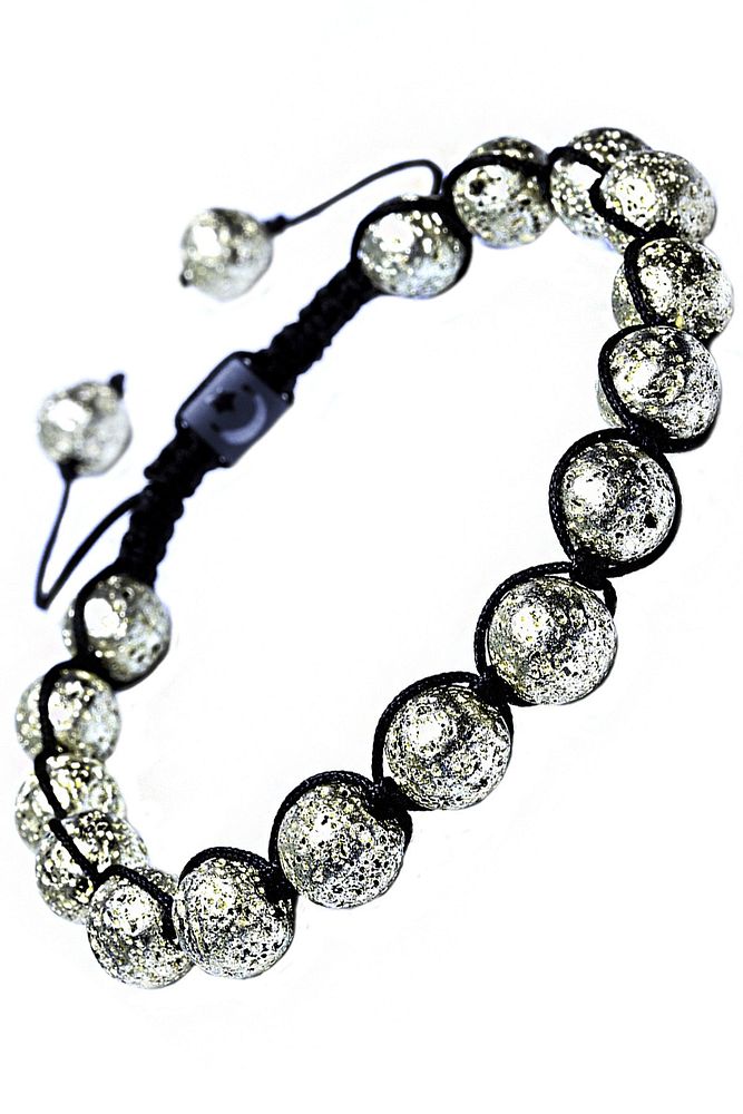 Sertifikalı Gümüş Renkli Doğal Lav Taşı Bileklik