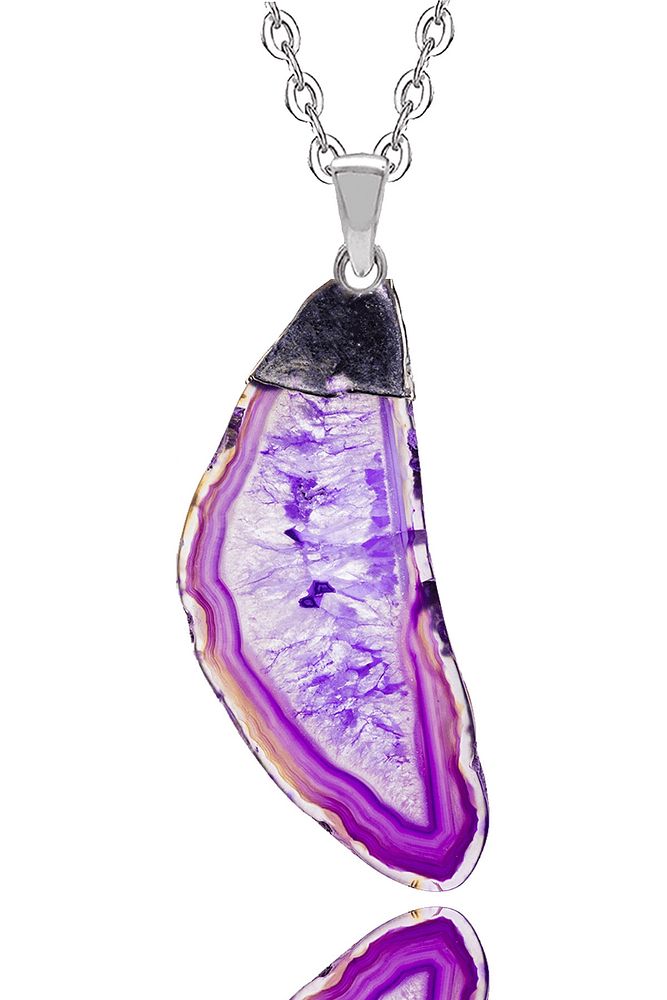Sertifikalı Ham Doğal Mor Akik Taşı Plaka Kolye