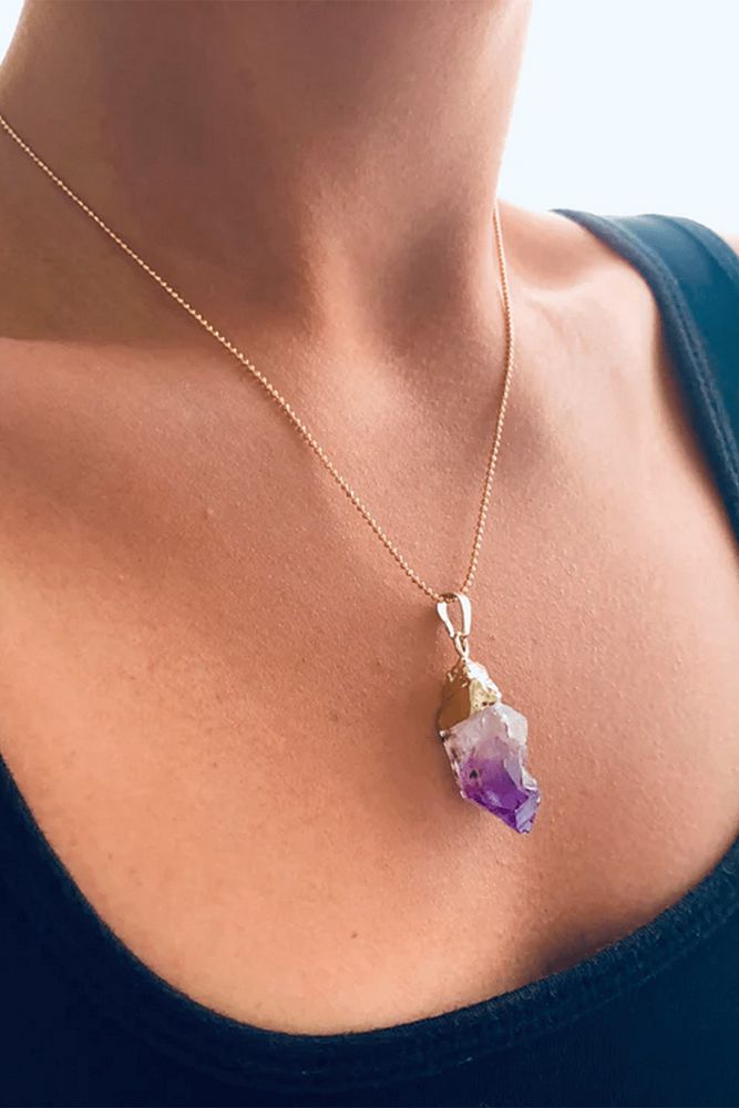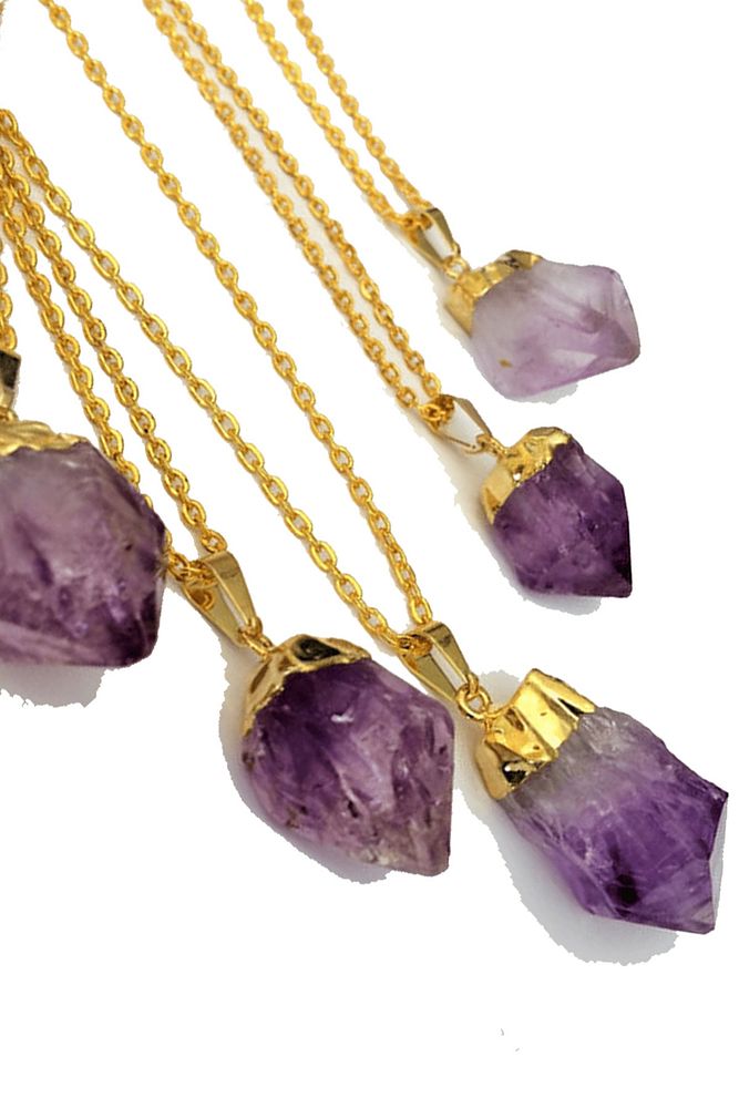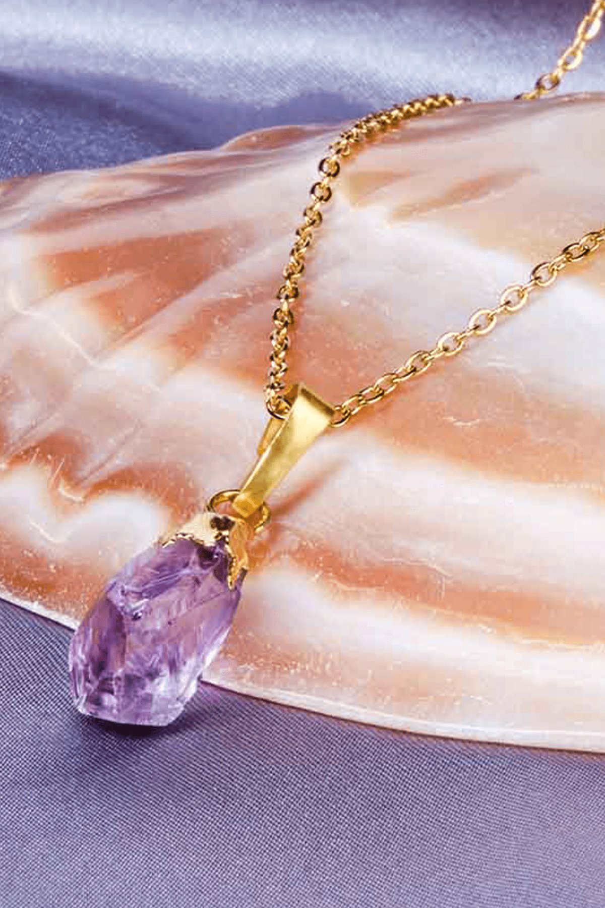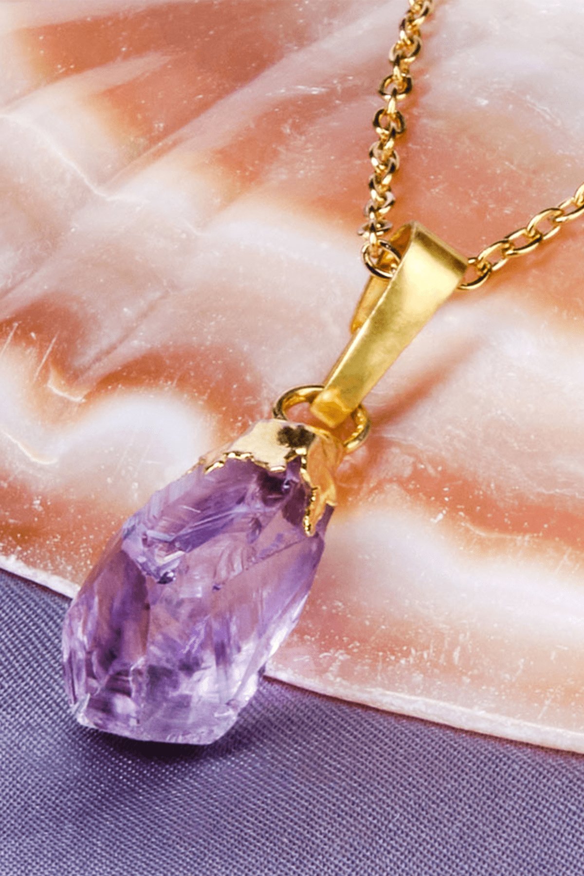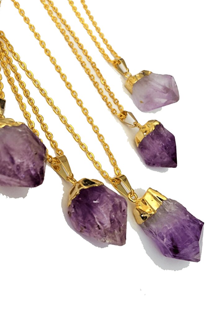 Sertifikalı Ham Işlenmemiş Ametist Taşı Kolye - 24k Altın Kaplama