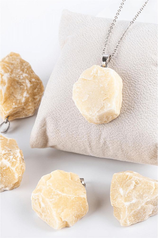Sertifikalı Ham Işlenmemiş Bal Kalsit Taşı Kolye