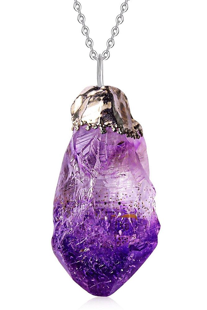 Sertifikalı Ham Işlenmemiş Kaya Doğal Ametist Taşı Kolye (1.KALİTE)