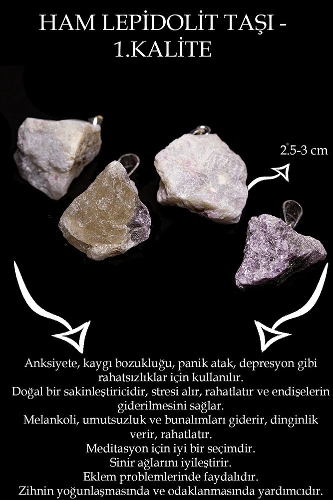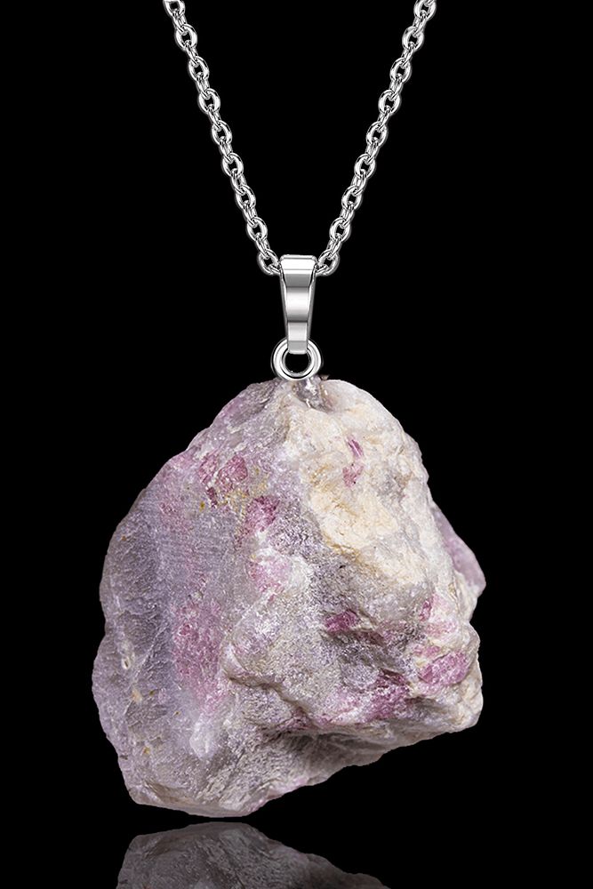Sertifikalı Ham Işlenmemiş Lepidolit Taşı Kolye