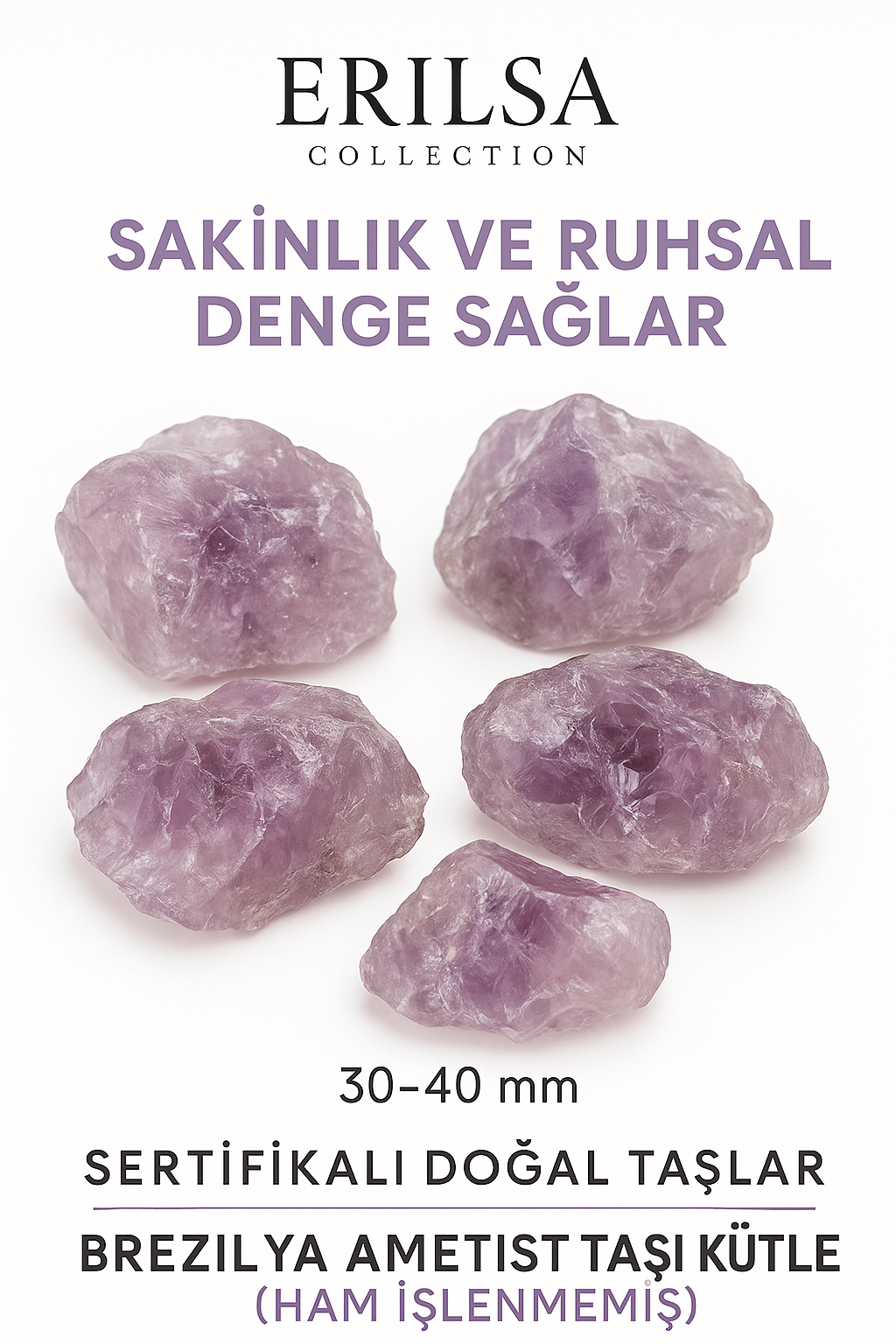 Brezilya menşeli bu ametist; açık mor, neredeyse şeffafa yakın tonlarıyla son derece estetik ve yüksek titreşimlidir. Ham ve doğal formu ile saf enerjiyi doğrudan yayar. El taşına uygun ölçülerde olup, iç yapısı ışıkla temas ettiğinde büyüleyici bir yansıma sunar.