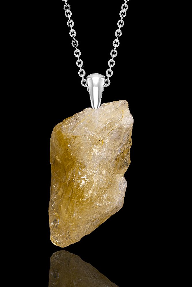 Sertifikalı Ham Işlenmemiş Sitrin Taşı Kolye - Brezilya