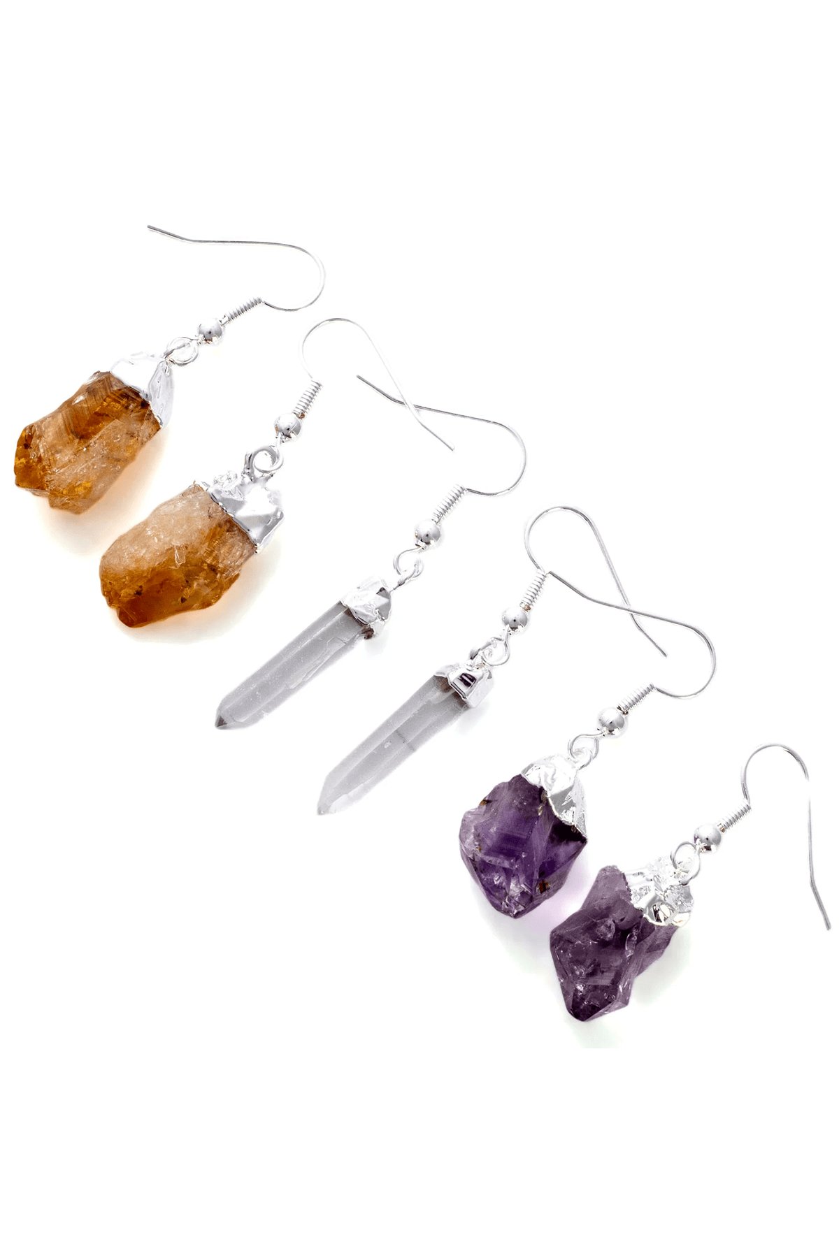 Sertifikalı Ham İşlenmemiş Sitrin Taşı Küpe
