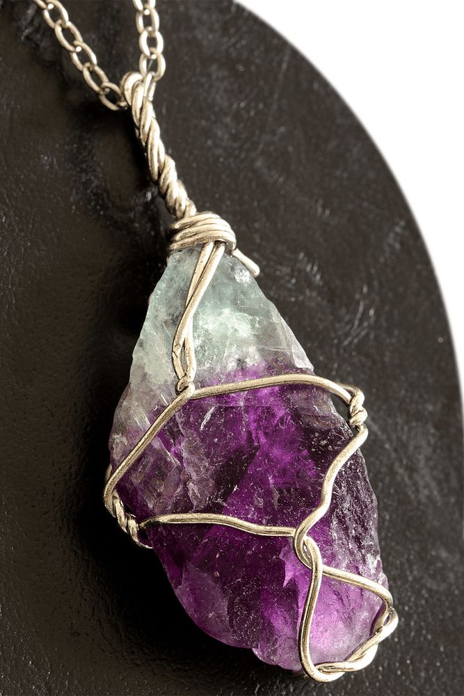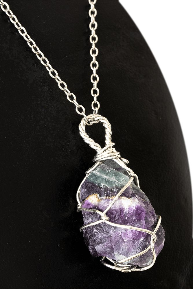 Sertifikalı Ham Işlenmemiş Tel Sargılı Florit Taşı Kolye