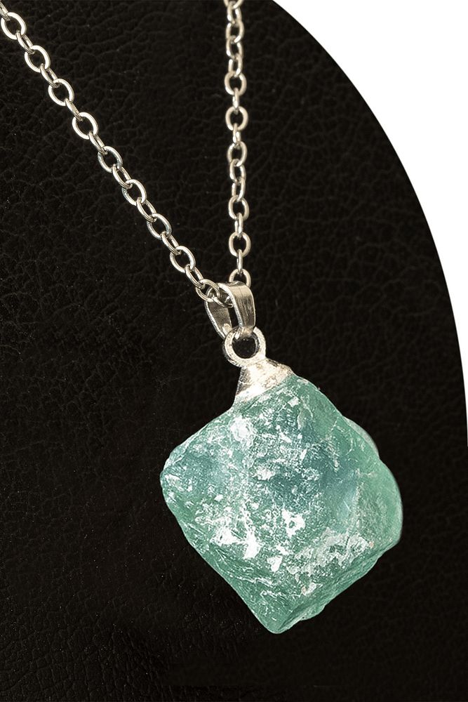 Sertifikalı Ham Işlenmemiş Yeşil Florit Taşı Kolye (MİNİ BOY)