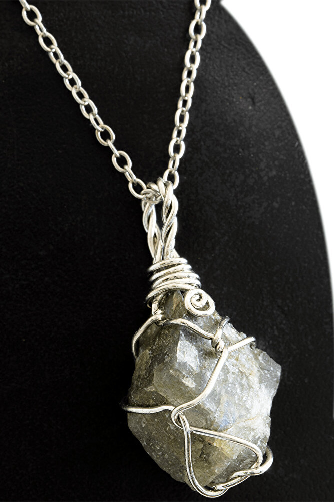 Sertifikalı Ham Tel Sargılı Labradorit Taşı Kolye