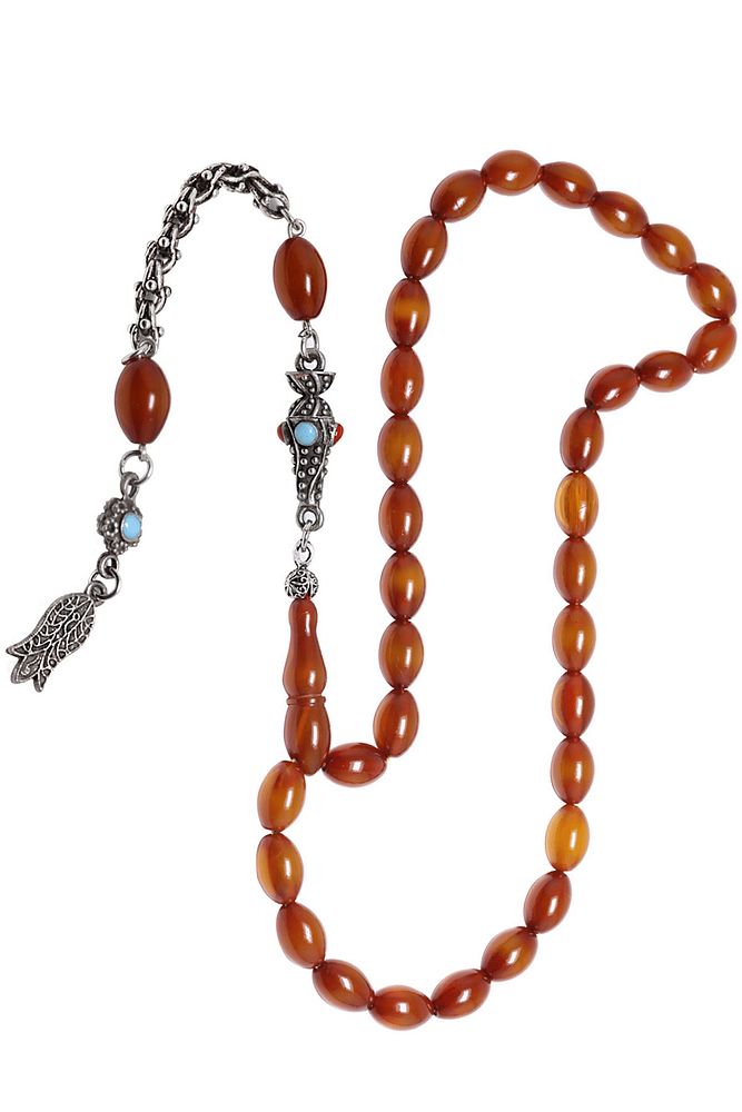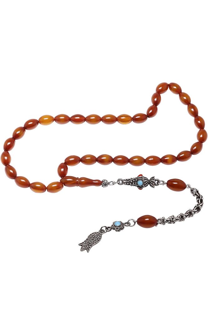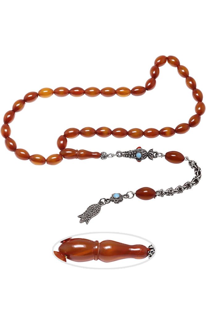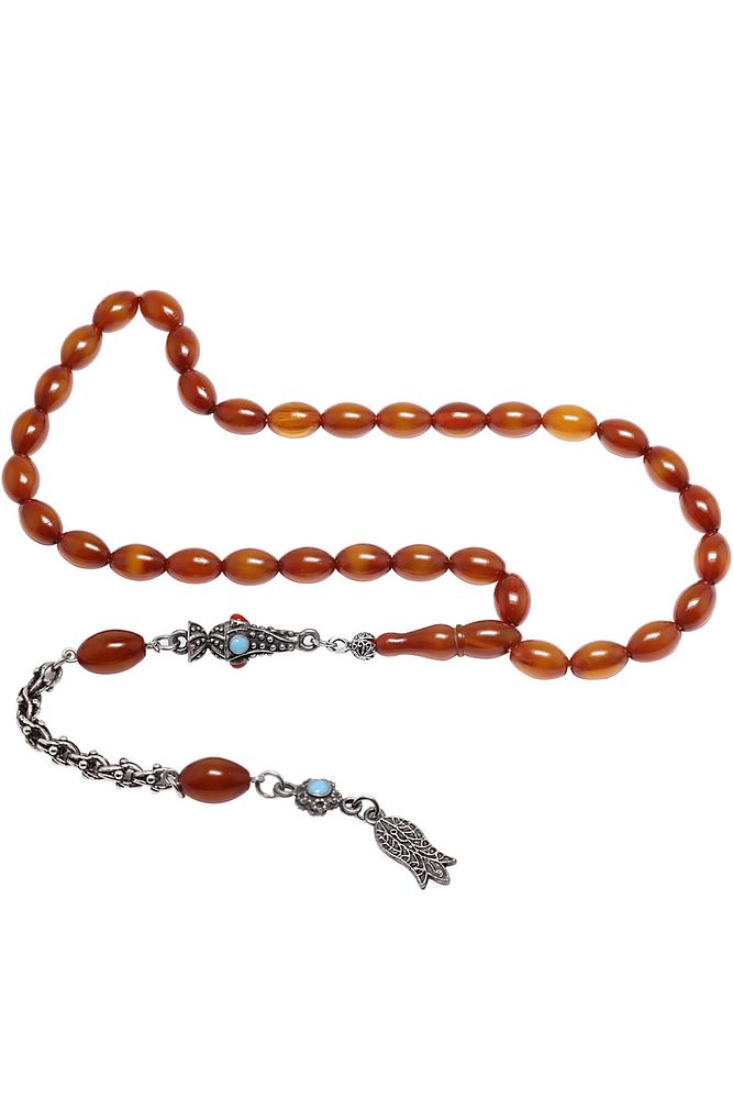 Ürün ya da Doğal Taş Açıklaması; ; (Baş Ağrısı Sinir ve Stres); ; Tesbih Atölyesi, Sıkma kehribar tesbih, tasarımları özel olarak usta ellerde tasarlanır. Tasarımlarımız el yapımı olup sınırlı adette üretilmektedir. Tasarımlarda kullanılan püsküller düşük ayar gümüşten imal edilir. Tasarımlarda kullanılan kehribar taneleri hareli özel kalıplardan yapılır. Yapay reçine ile üretilmektedir. Ürünlerimiz renk almakta ve koku vermektedirler. ; ; Bu tasarımda; Kahverengi renkli muhteşem kalitede 1.kalite sıkma kehribar reçine kullanılmıştır. Her kehribar tanesi birbirinin aynısı olmadığı için küçükte olsa farklılıklar gösterebilir.; ; Üretildiği Malzeme; Sıkma Kehribar; Ana Renk; Kahverengi Renk; Ağırlık; 20-30 gr; Tane Şekli; 8x12 mm; Tane Ölçüsü; Beyzi Kesim; Toplam Uzunluk; 20-30 cm; İmame ve Püskül Maddesi; Sistemli;