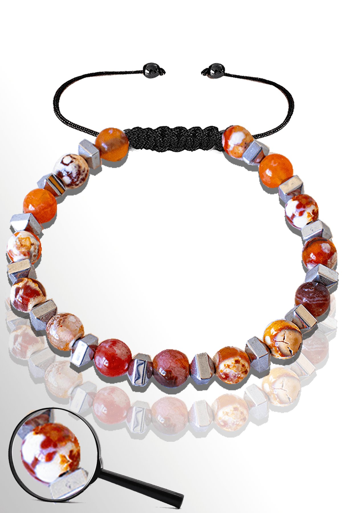Sertifikalı Hematitli 6 Mm Doğal Beyaz - Kırmızı Akik Taşı Bileklik - Ayarlamalı
